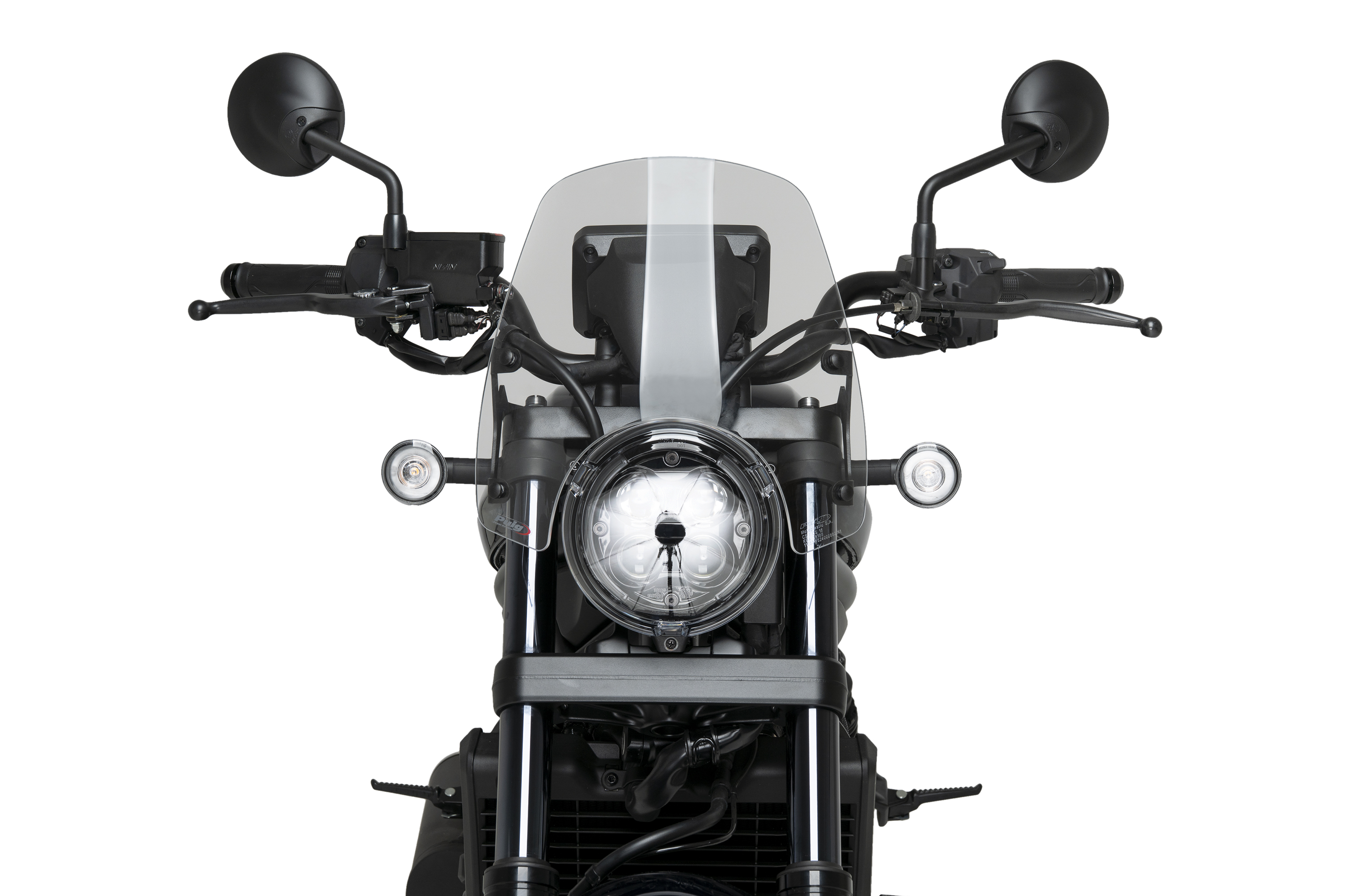 Diese spezielle Scheibe für die Honda CMX 1100 Rebel 2021 wurde entwickelt, um das Straßenbild der beliebten Honda Custom zu optimieren, ohne ihre Ästhetik zu beeinträchtigen, da sie dank ihres eleganten und diskreten Designs vollständig in das Motorrad integriert ist.