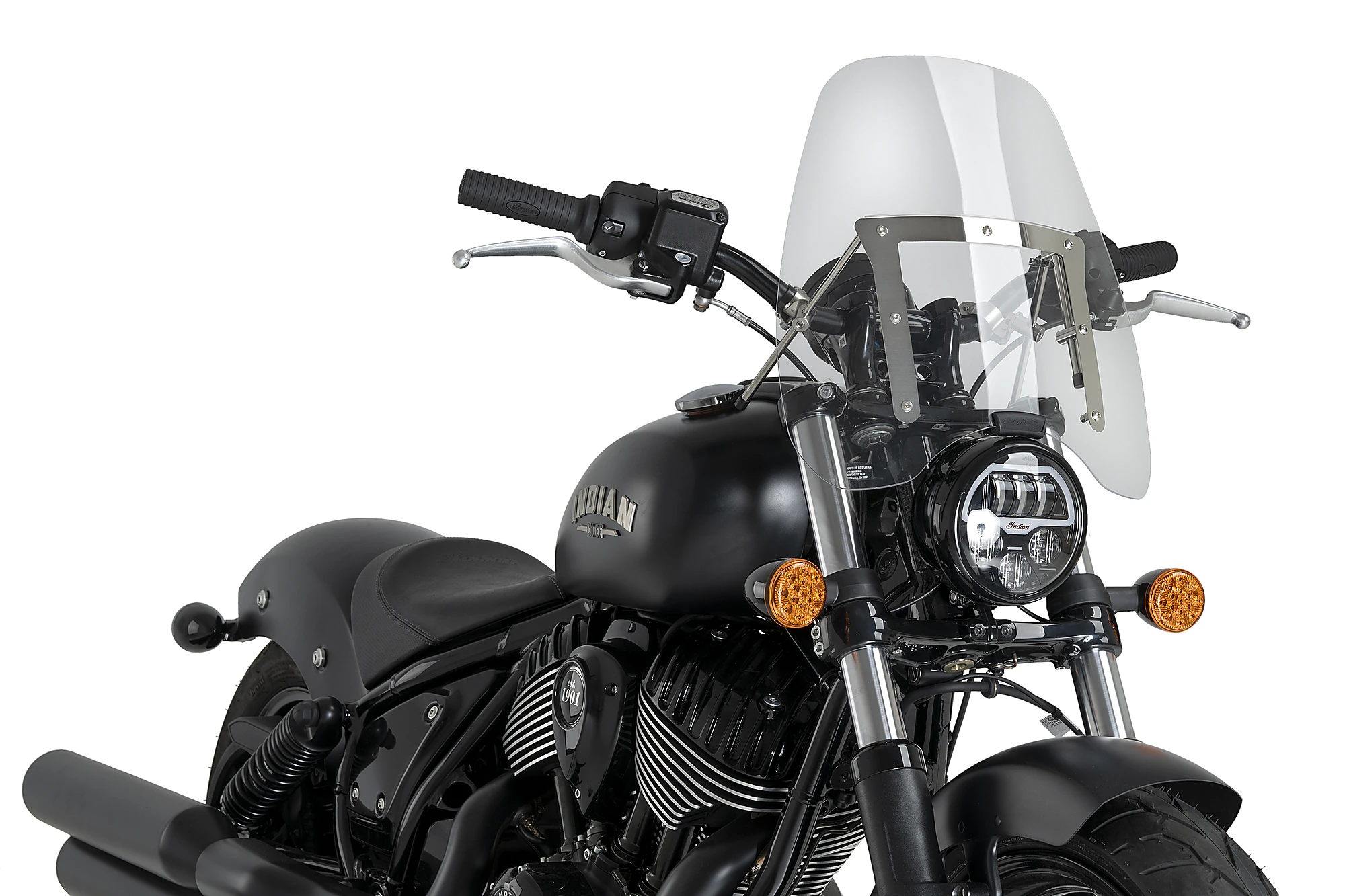 Dieses Modell der Windschutzscheibe ist an die meisten Custom-Motorräder mit rundem Scheinwerfer anpassbar und wird mit einem kompletten Montagesatz zur Befestigung am Motorrad geliefert (2 Befestigungspunkte). Falls Ihr Motorrad es erfordert, bietet Puig auch ein spezielles Hardware-Kit an. Zur einfacheren Montage der Windschutzscheibe, wird Ihnen eine visuelle Gebrauchsanweisung mitgeliefert.