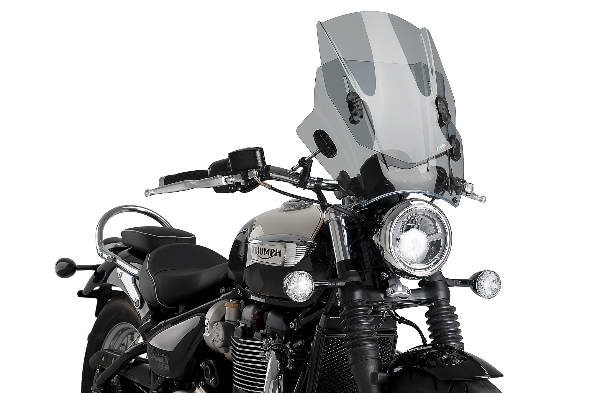 Renew the image of your motorcycle with a round headlight, with Puig’s innovative Up & Down bike windshield. Manufactured in 3mm high impact acrylic material that makes it highly resistant to impacts and strong against the inclemencies of the weather, this product stands out for its versatile design and for its easy assembly, but above all for the two screens that come together, which they allow it to regulate the height of the fairing providing total protection from the wind.