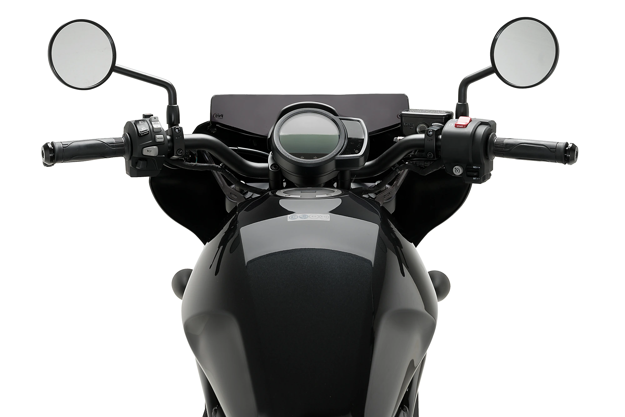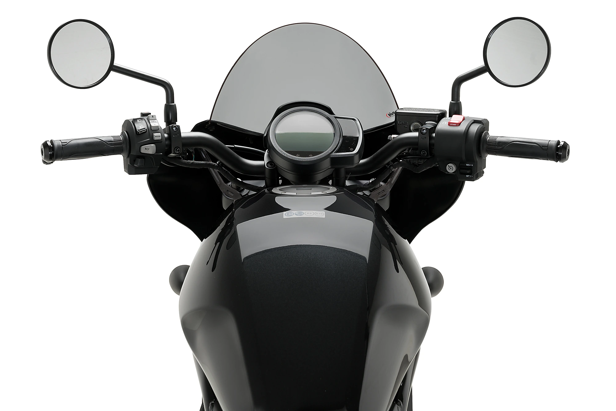 It allows installing two different screens, the Sport, more aggressive and minimalist, and the Touring screen that provides more aerodynamic protection. The screens are available in clear, light smoke and dark smoke to match the Mirage semi-fairing which is available in a matte black or gloss black finish.