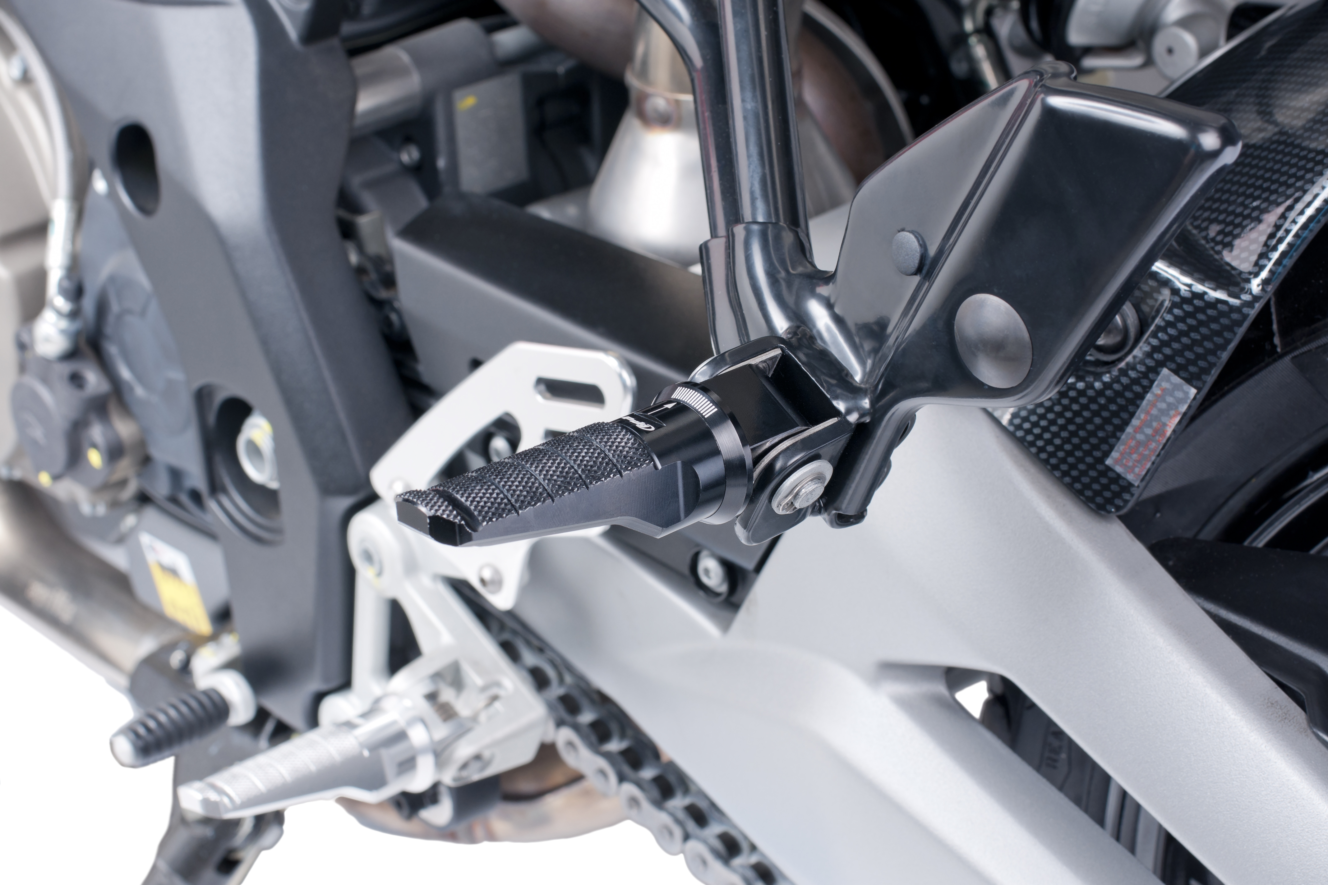 The Puig racing footpegs are specially designed for R motorcycles and offer maximum grip to the rider and passenger. Its attractive sport design makes it the perfect complement for the most radical motorcycles, whose aesthetics receive an even more extreme touch.