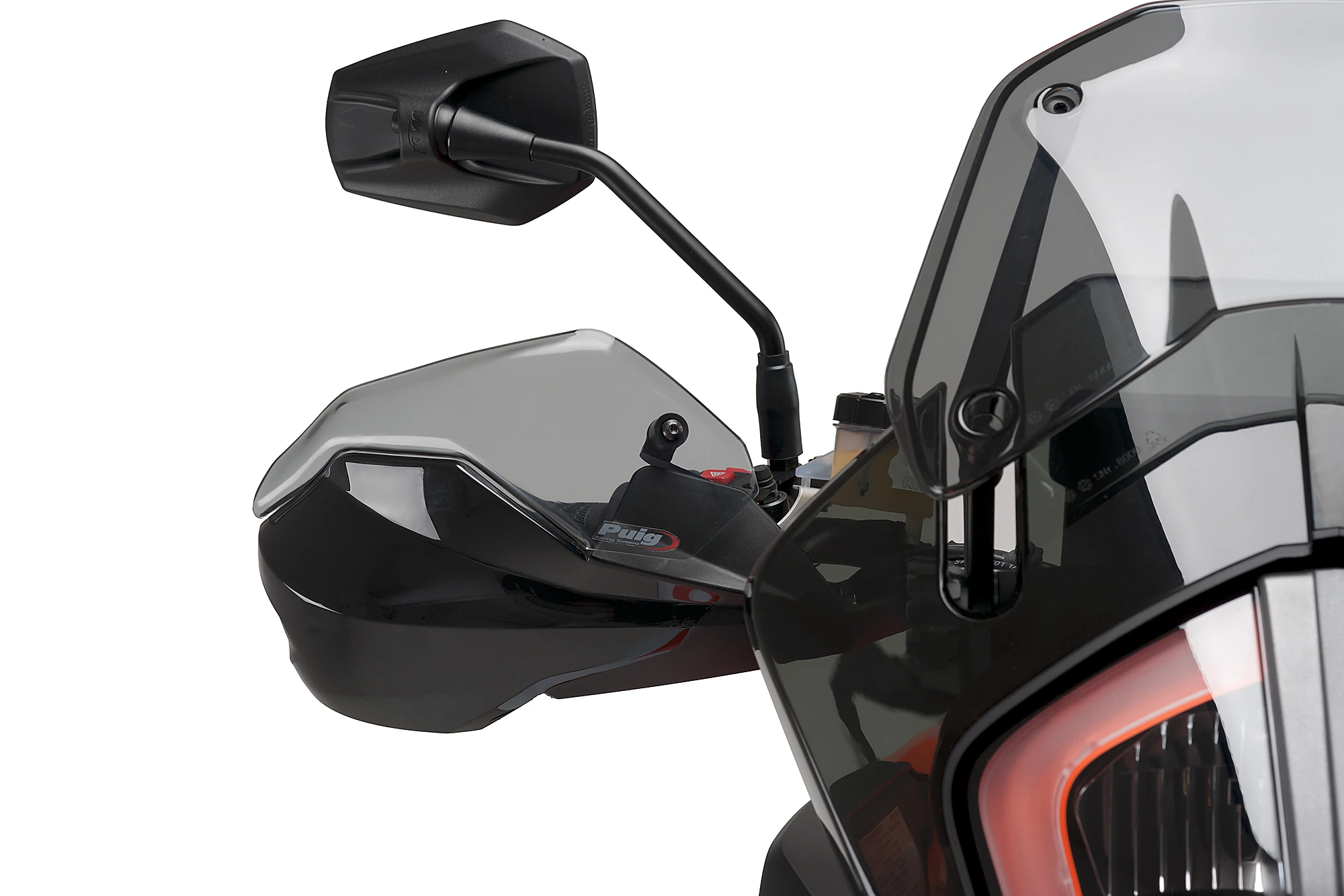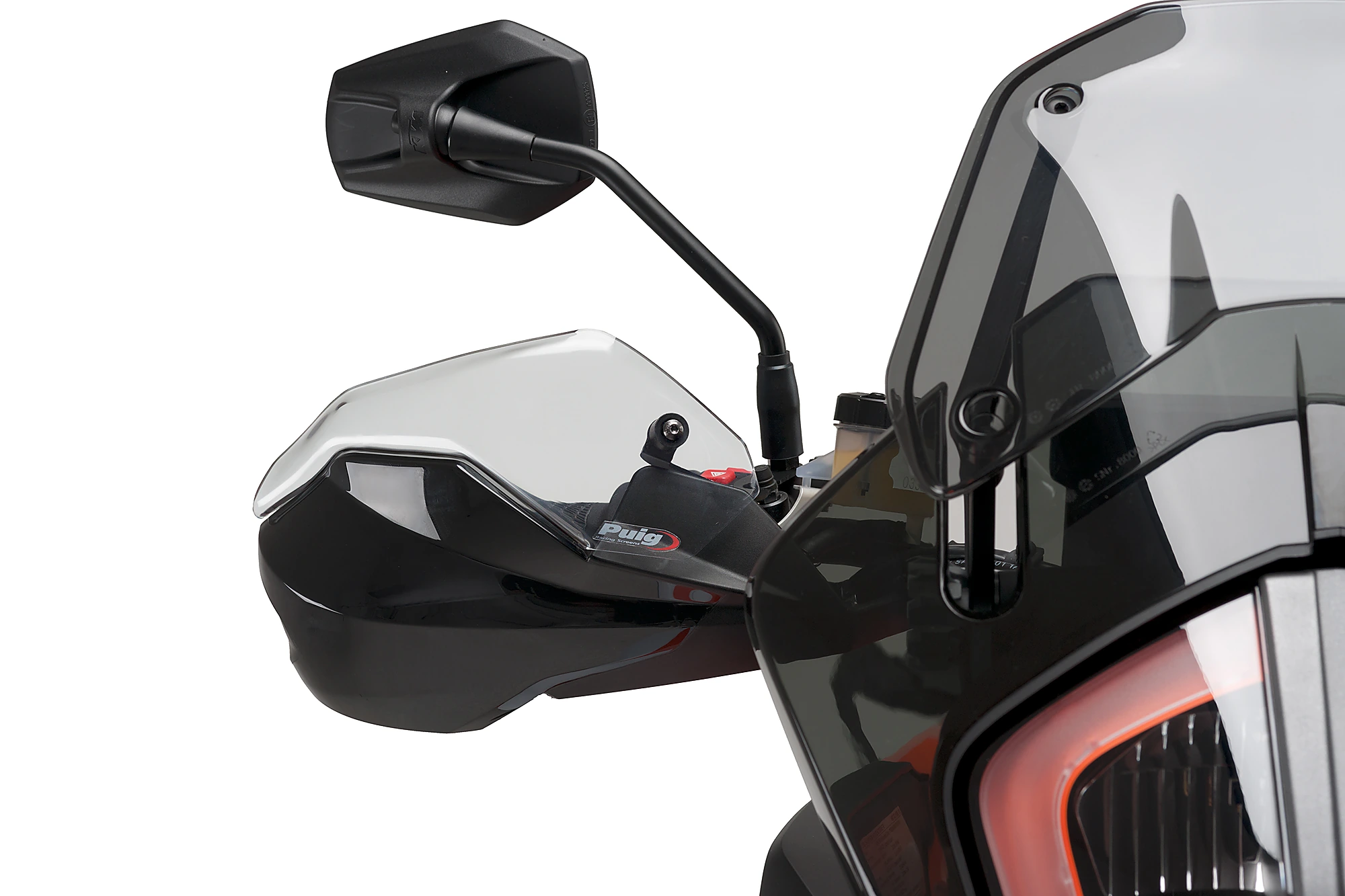 For a perfect harmony with the looks of your motorcycle, PUIG offers the handguard extensions in different colors: clear smoked, dark smoked and transparent, like the protective screens.