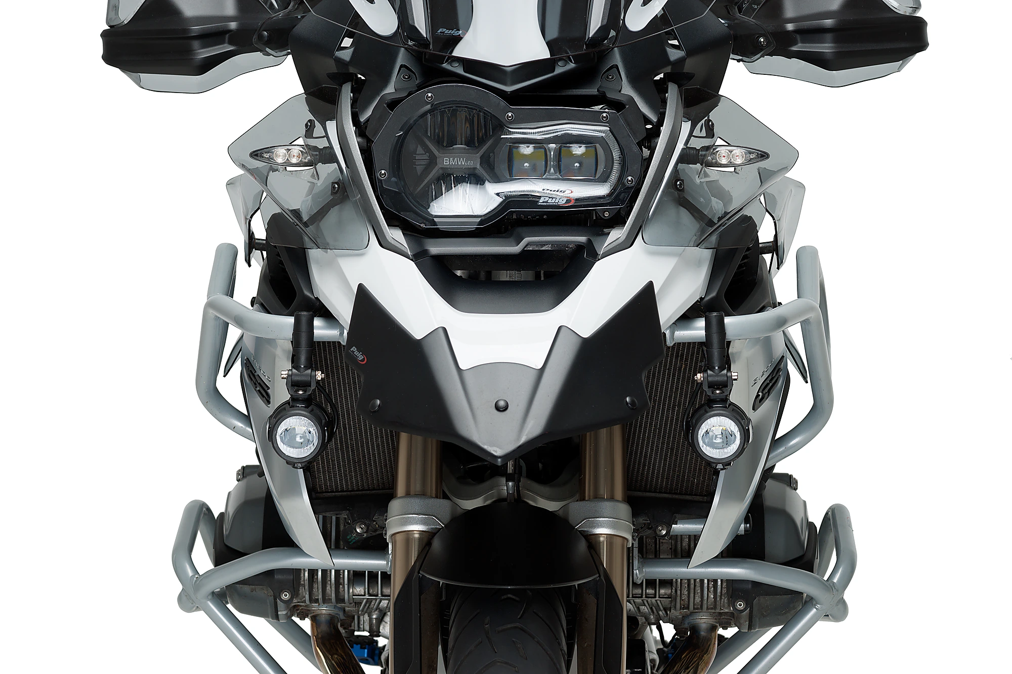 Includes all the accessories (wiring kit + switch) for the installation of engine guards between 23-25mm. For its installation at the front of the motorcycle check out availability. It does not include the protection grille.