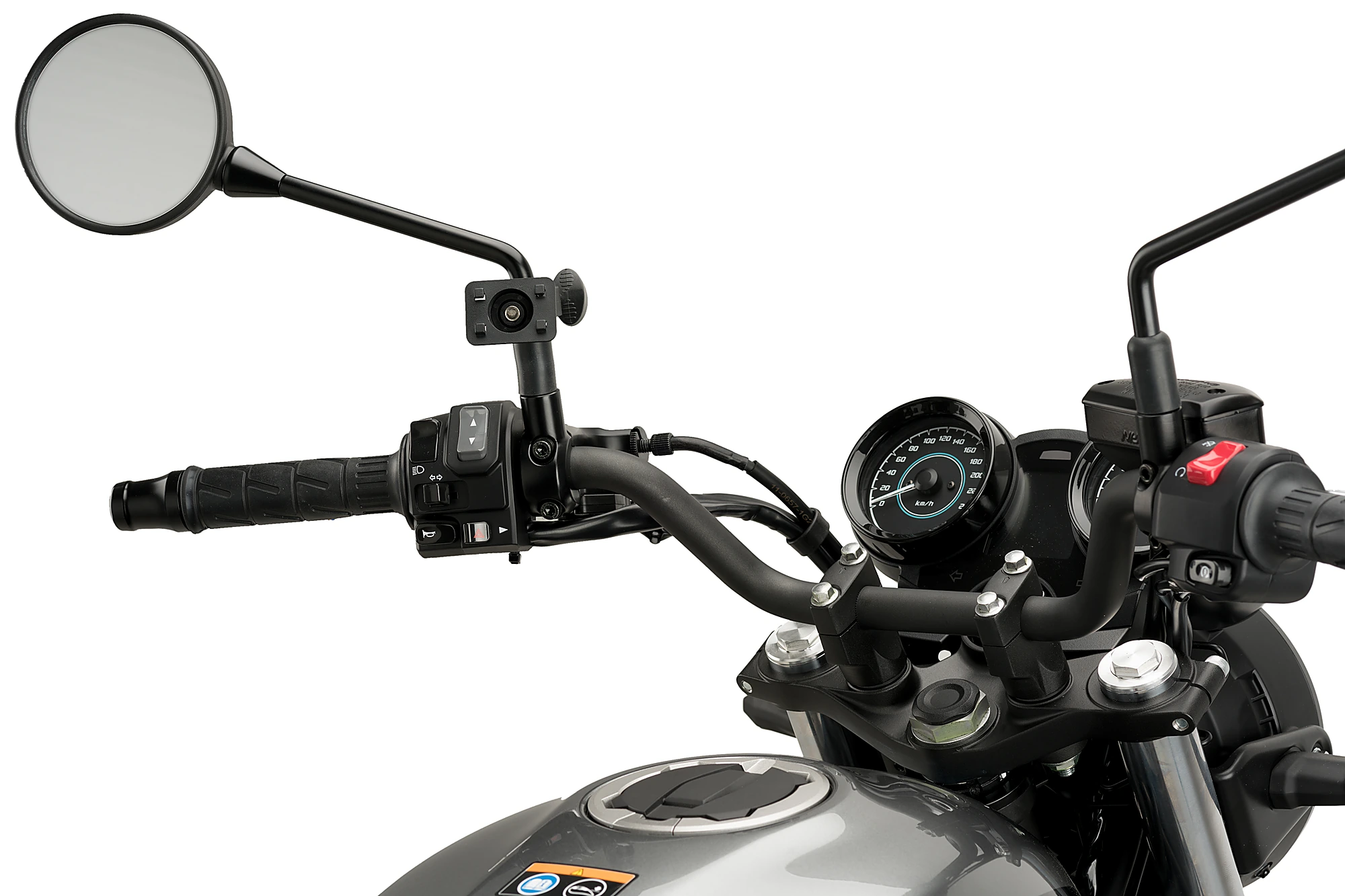 Once the support is installed, it is necessary to acquire a handlebar support to be able to mount the cel phone. You can get the Puig support for handlebar ref. 3534N.
