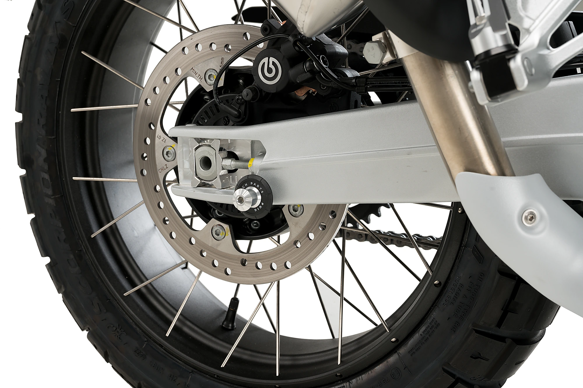 The swingarm is protected by the incorporation of the nylon washer.