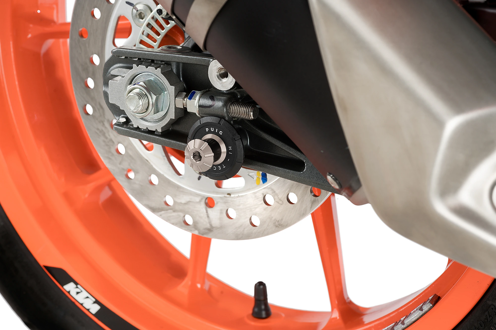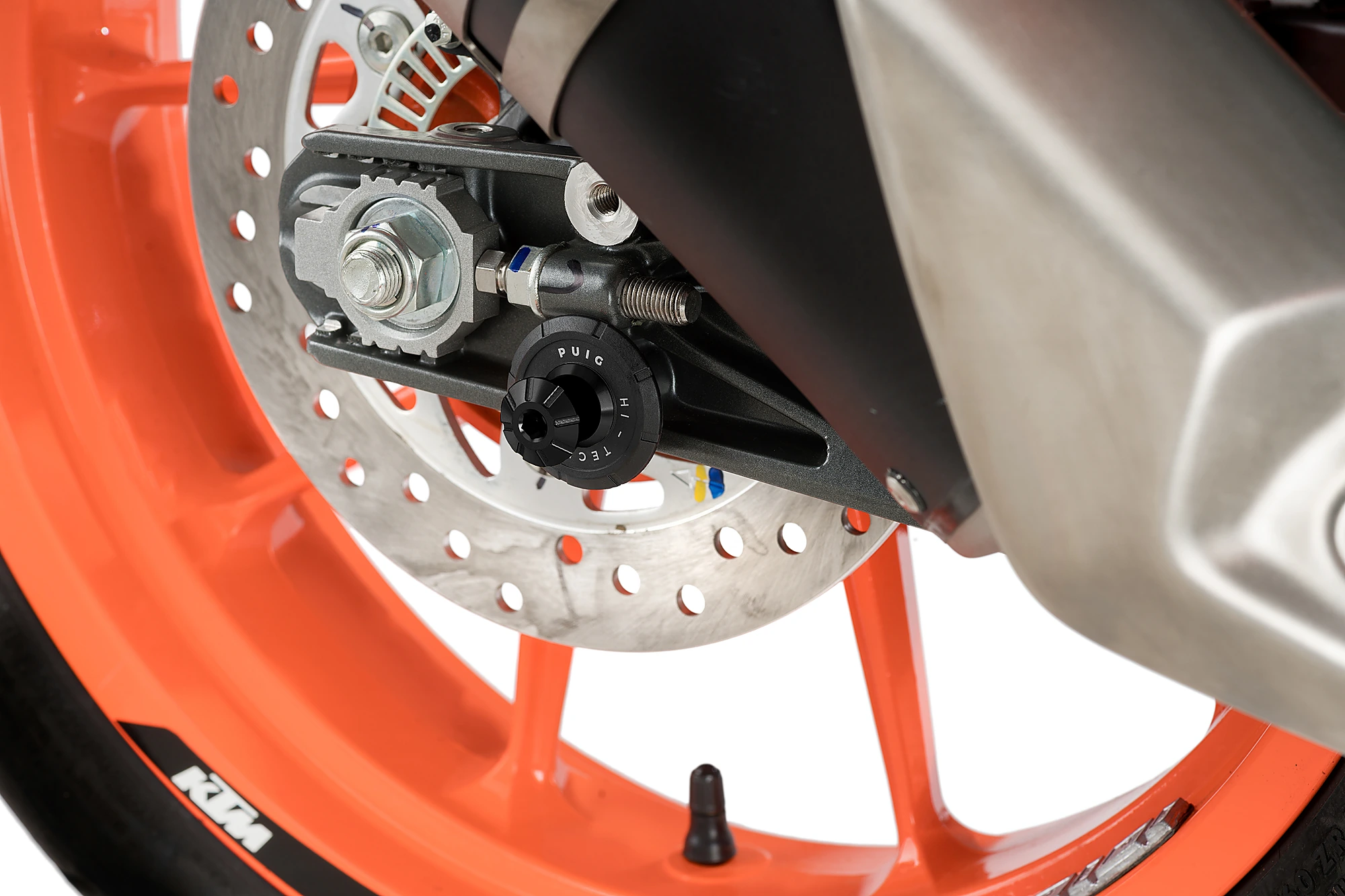 The swingarm is protected by the incorporation of the nylon washer.