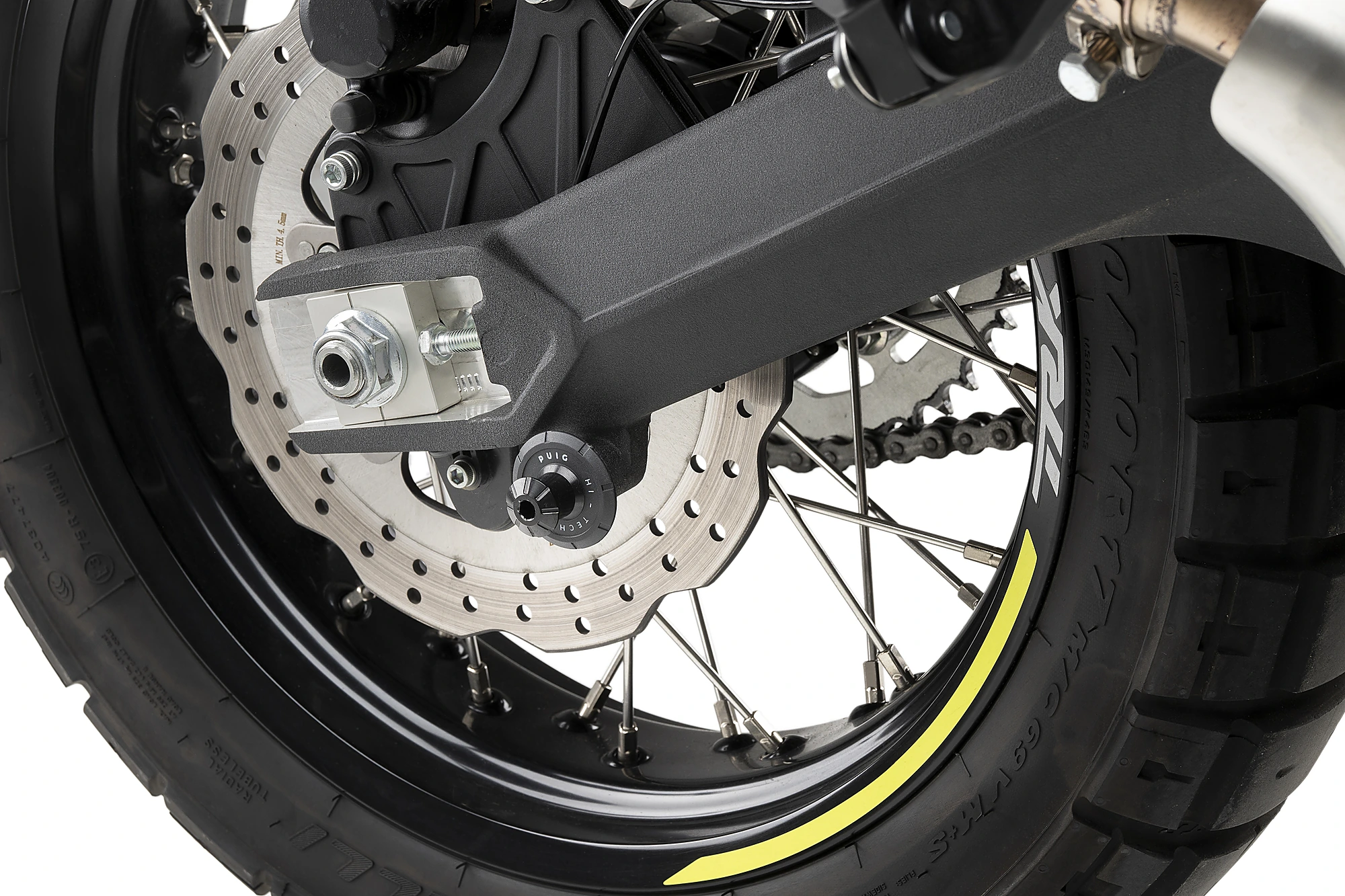 The swingarm is protected by the incorporation of the nylon washer.