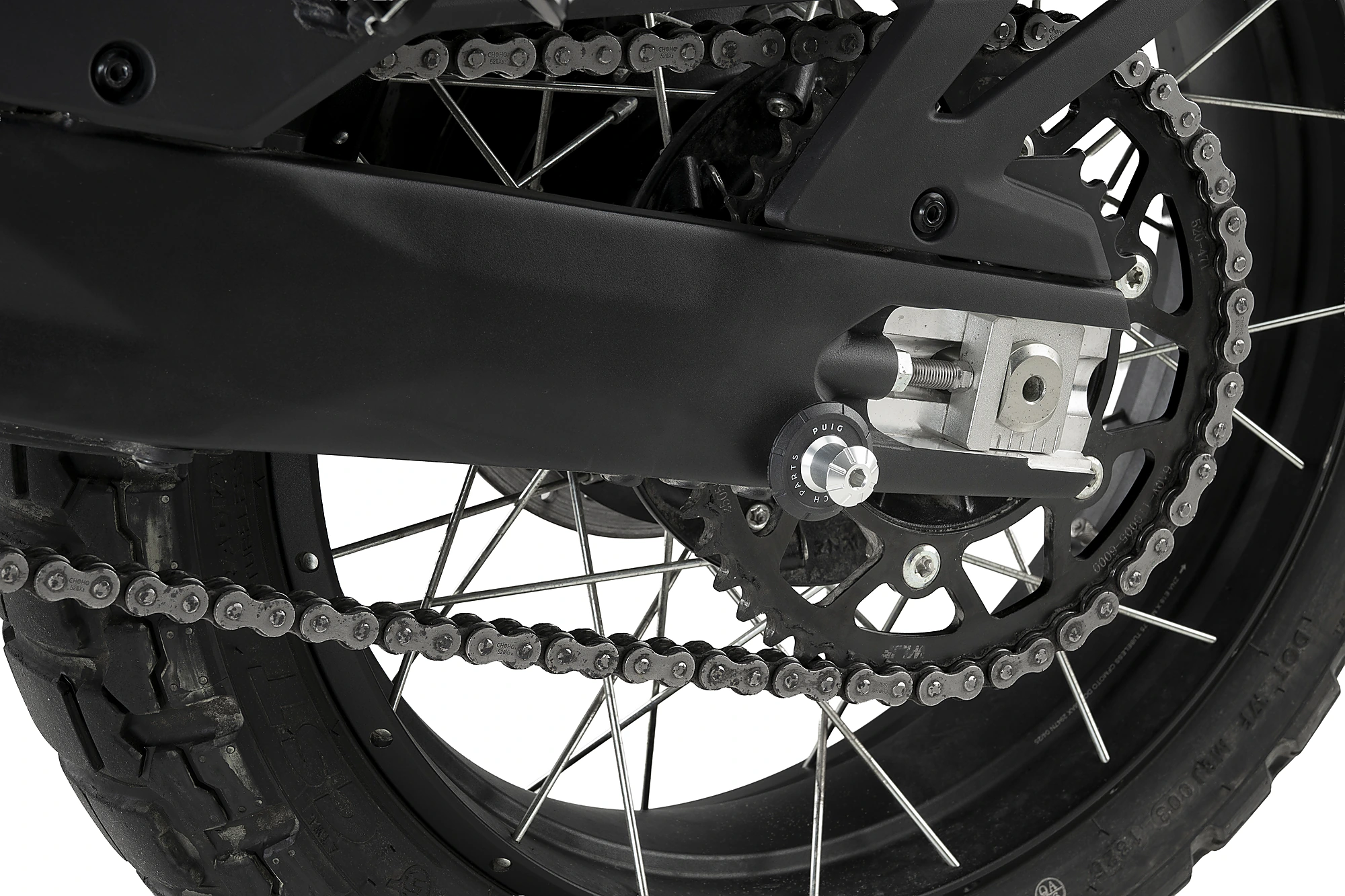The swingarm is protected by the incorporation of the nylon washer.