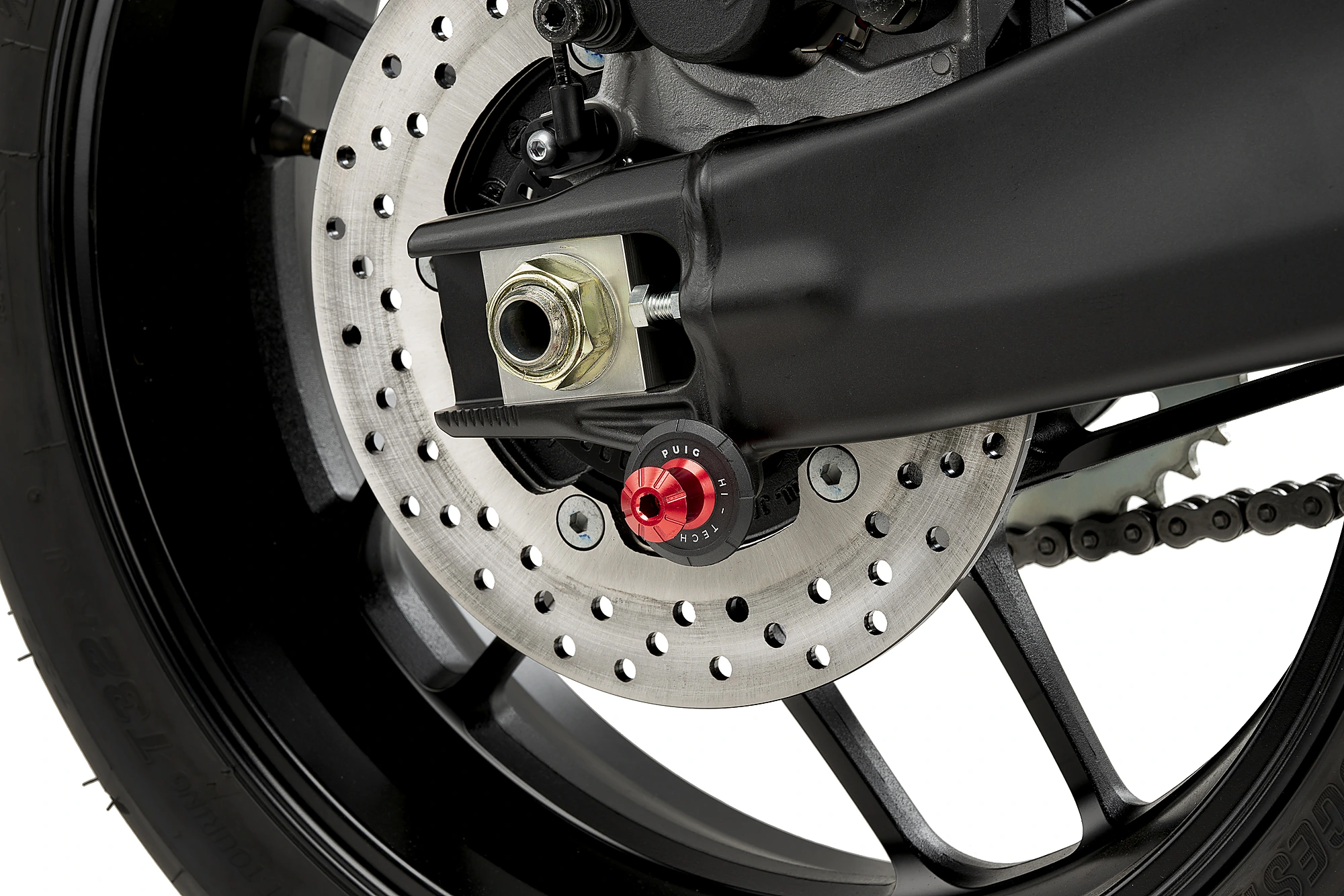 Spools work as a guide to fit a stand and easily raise your motorcycle, quickly and safely. In this case, we present the Spool Pro by Puig. Manufactured from an anodized aluminium billet (reduced weight of 32 gr), it will guarantee the protection of the swingarm from possible scratches thanks to the fact that it comes with a black nylon washer with the Puig Hi-Tech Parts etched on it.
