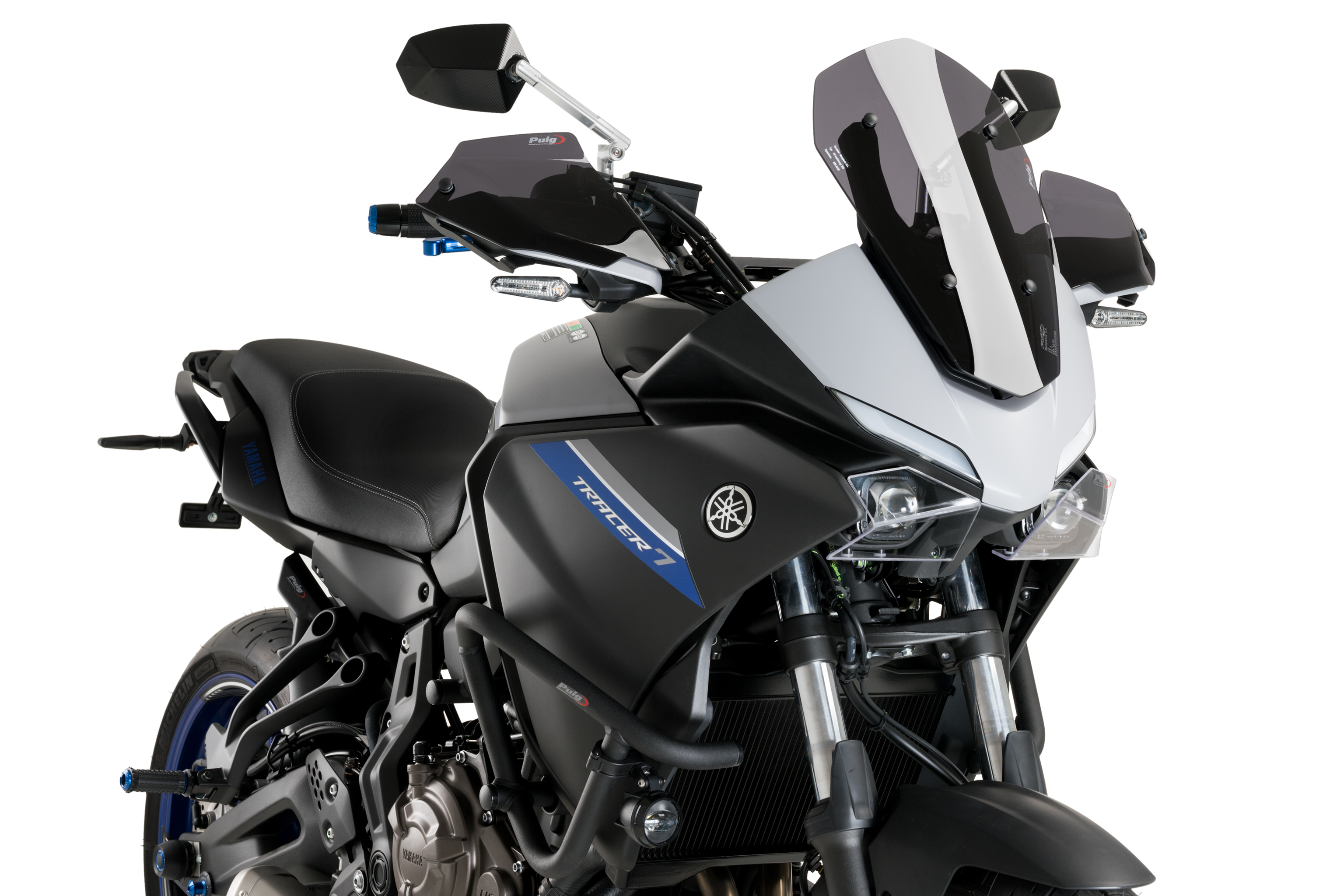 Emphasize the sport character of your Yamaha Tracer 700 with the Puig Sport screen, developed to maintain the aerodynamic protection while integrating its futuristic and aggressive design. The height of the Sport screen guarantees perfect visibility of the road. In addition, you can choose between clear, light smoked, dark smoked, black and other colors, which combine perfectly with the finish of your Tracer.