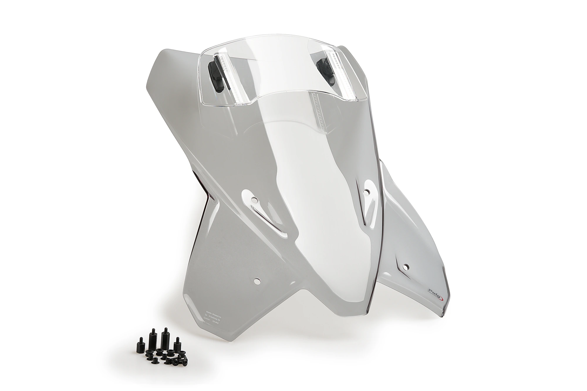 Replace your motorcycle’s windscreen with PUIG’s touring windscreen. Manufactured in acrylic of 3-4 mm according to the motorcycle model to guarantee maximum protection from the wind, improving the aerodynamics of the piece and possible debries that may impact you during your ride. In addition, it comes with a variable visor that will redirect the wind even more while achieving a great sense of comfort on board your machine. This visor is fixed to the touring windscreen by screws, since the screen comes with the holes already made to facilitate assembly. Note: not all touring windscreen models come with a visor.