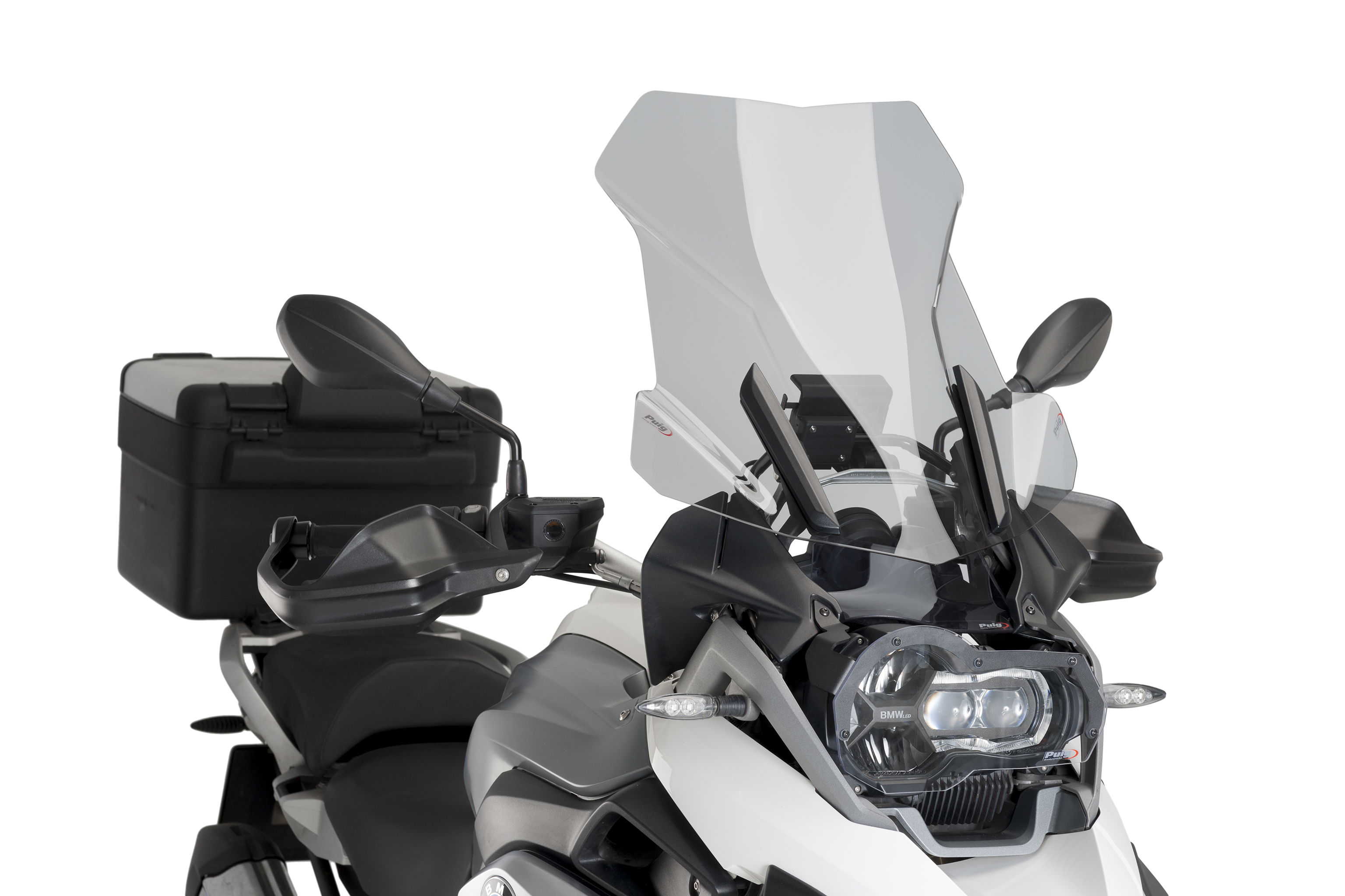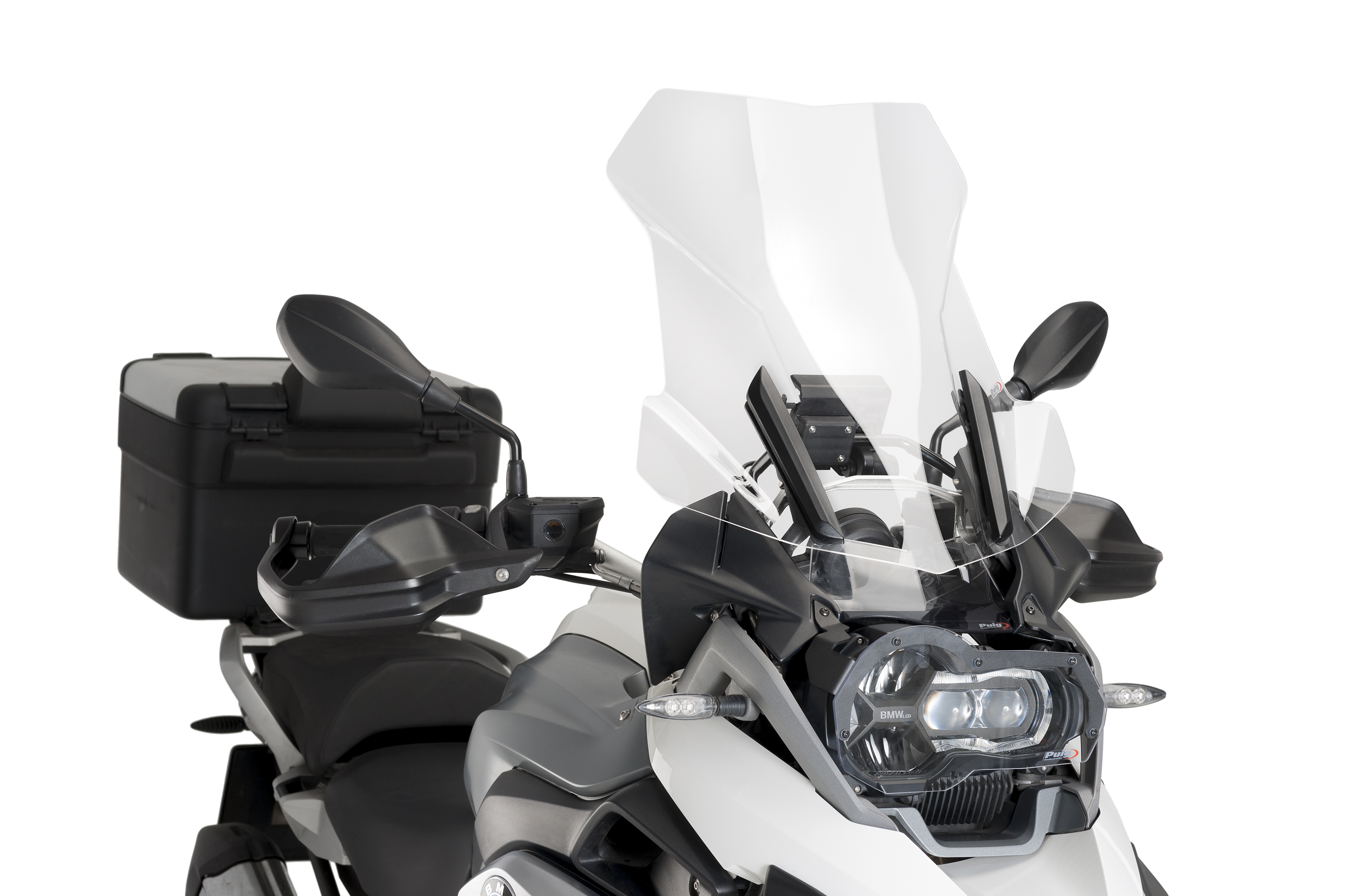 Touring screens, developed by Puig in Barcelona, are designed with the objective to aerodynamically protect the rider without affecting his/her field vision. In addition, these screens fit perfectly with the adventure style and aesthetics of the trail models thanks to their wide range of colors and different sizes.