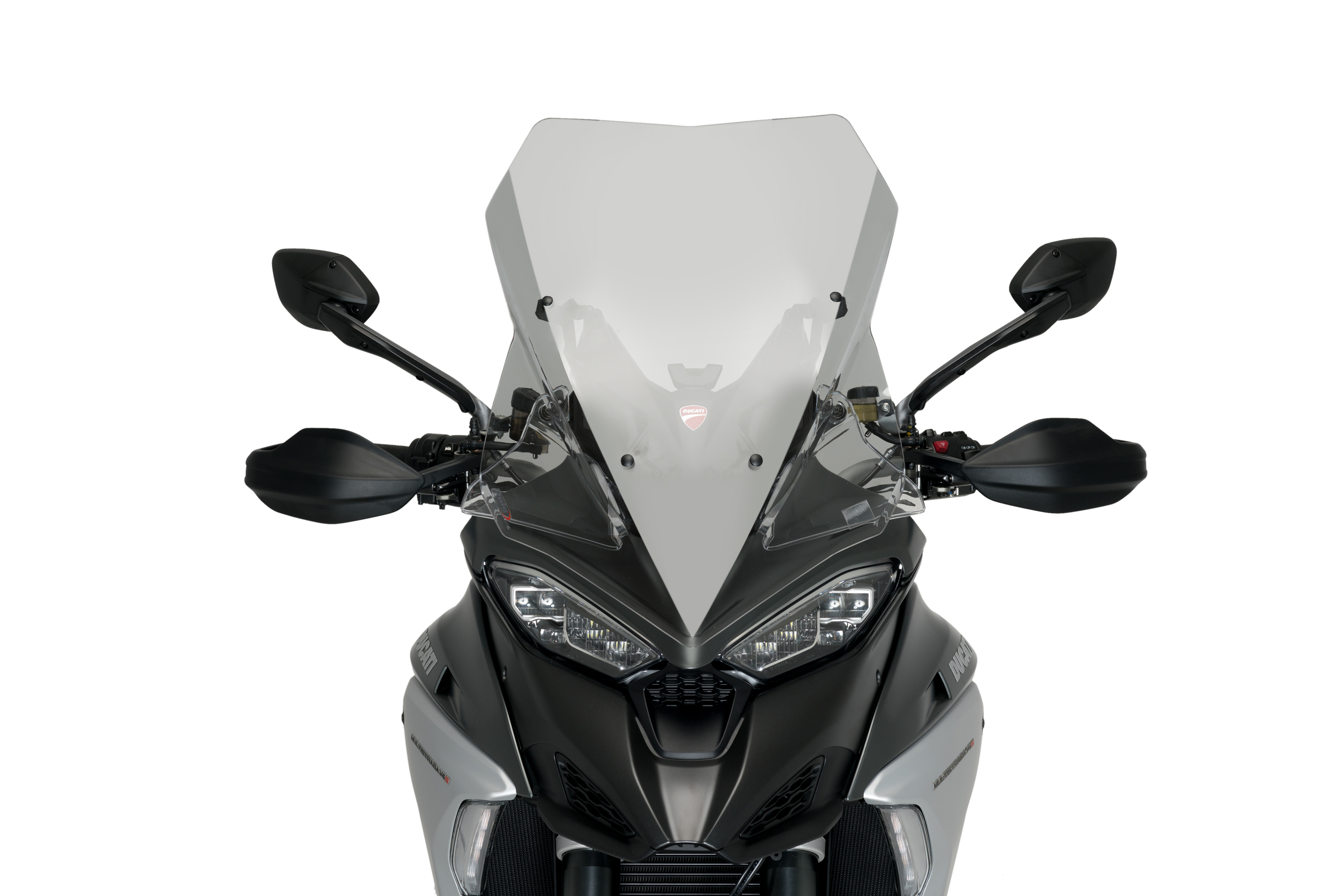 The new Puig Touring screen for the Ducati Multistada V4 2021 is a screen with a refined design and studied aerodynamically to effectively protect the rider during the route without altering the elegant design of the Italian manufacturer's motorcycle model.