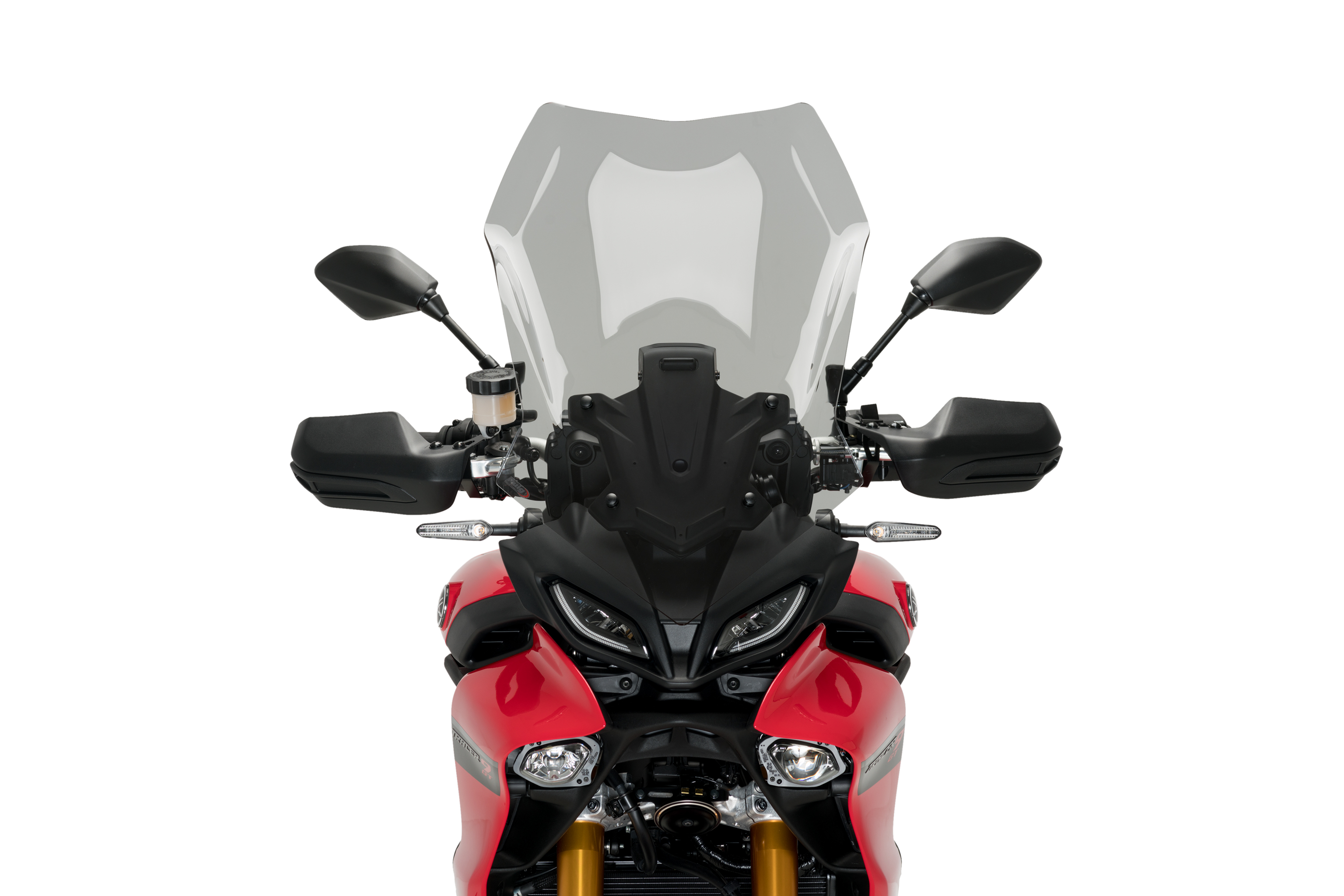 Touring screens, developed by Puig in Barcelona, are designed with the objective to aerodynamically protect the rider without affecting his/her field vision. In addition, these screens fit perfectly with the adventure style and aesthetics of the trail models thanks to their wide range of colors and different sizes.