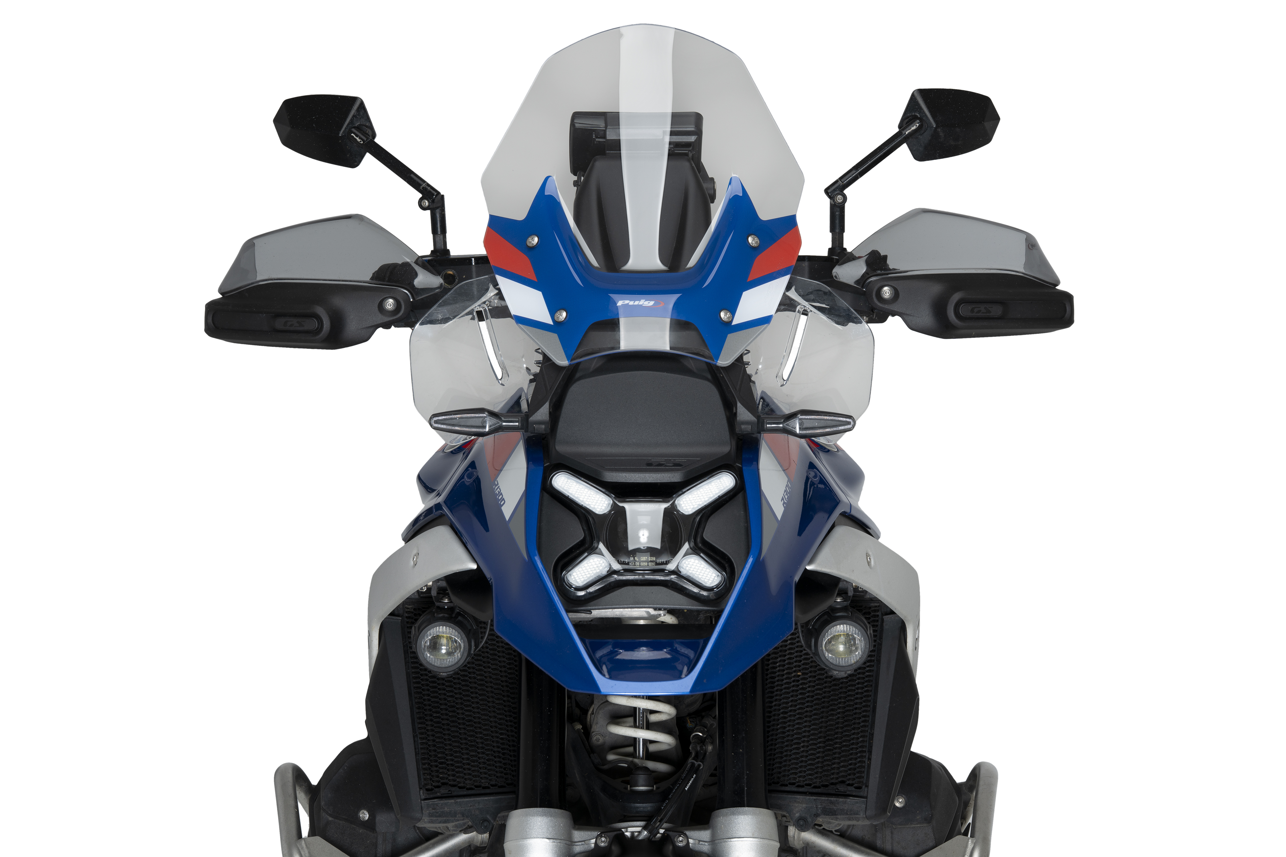 Touring screens, developed by Puig in Barcelona, are designed with the objective to aerodynamically protect the rider without affecting his/her field vision. In addition, these screens fit perfectly with the adventure style and aesthetics of the trail models thanks to their wide range of colors and different sizes.