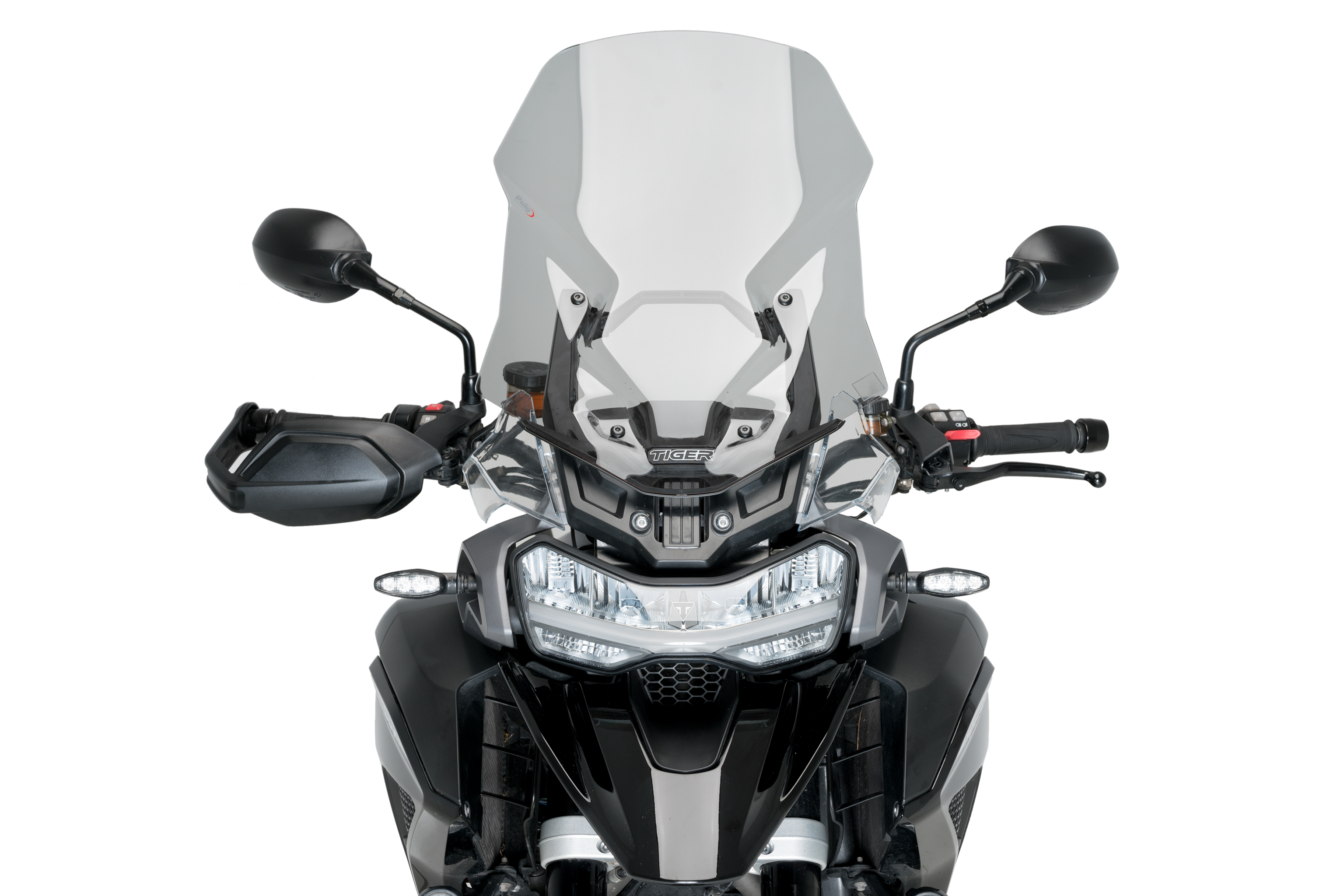Its total measurements are 530 mm high by 395 mm wide. Puig's touring screen is 80mm taller than the original screen on the 2022 Triumph Tiger 1200.
