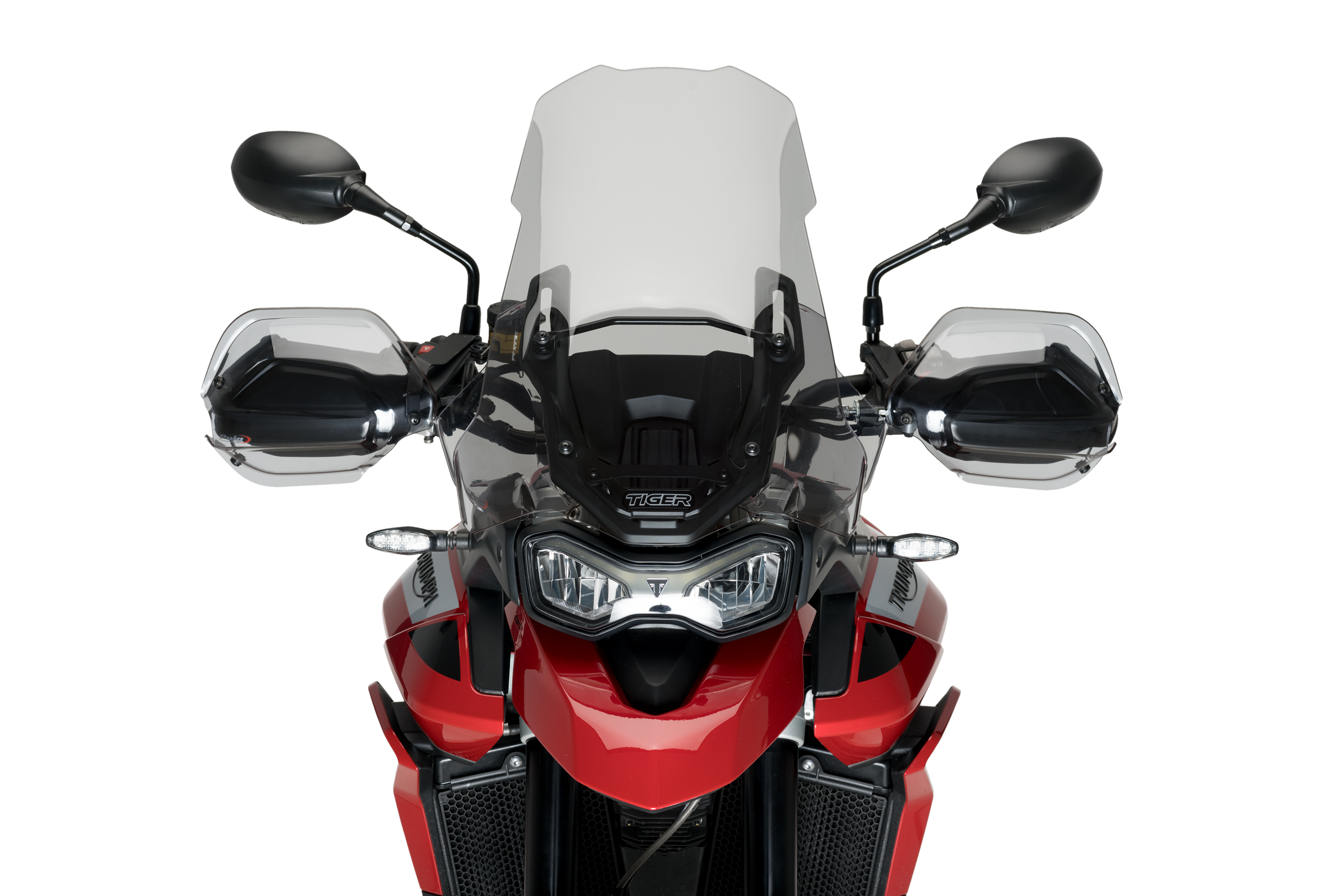 Touring screens, developed by Puig in Barcelona, are designed with the objective to aerodynamically protect the rider without affecting his/her field vision. In addition, these screens fit perfectly with the adventure style and aesthetics of the trail models thanks to their wide range of colors and different sizes.