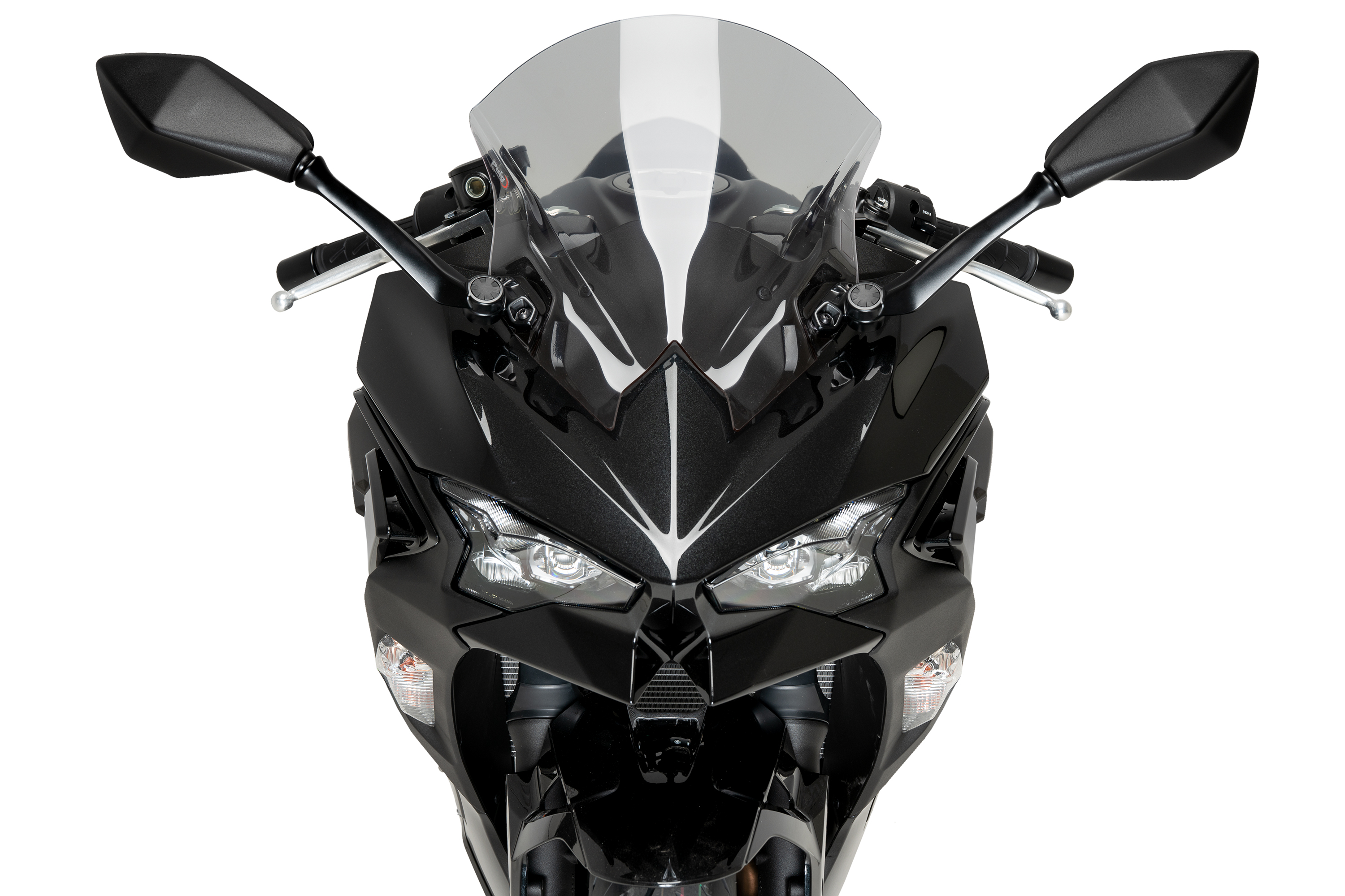 The new Z-Racing windshield for the Kawasaki Ninja 500 SE has been designed with a height +25mm higher than the original windshield to provide greater aerodynamic protection to the rider while maintaining the aggressive aesthetics that characterize it.