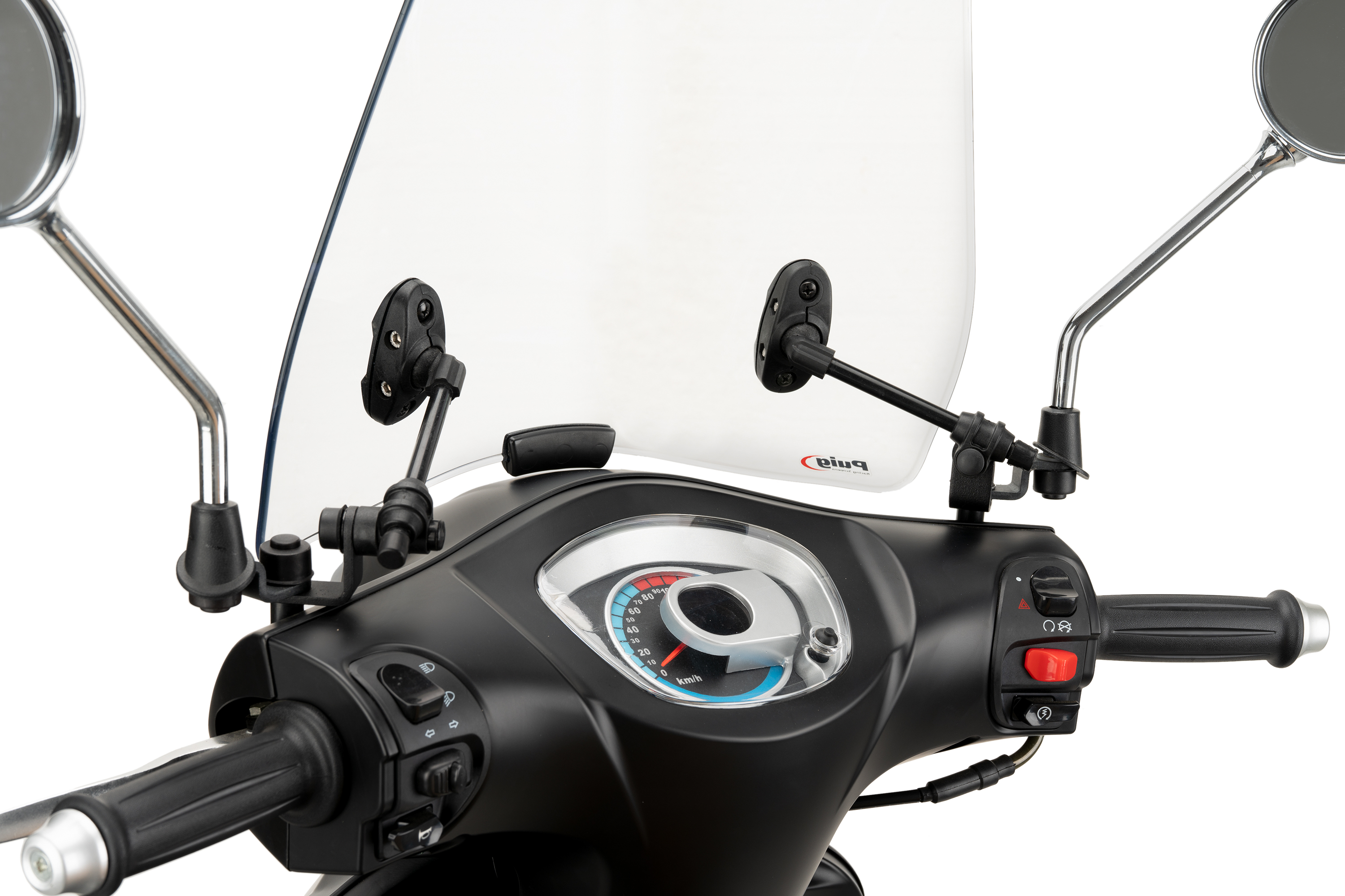 For the installation of the Trafic windshield, the manufacturer offers the piece with a special kit for finished specific models of Scooters. If required, Puig also offers an universal model for those bikes that need it together with a complete fixing kit.