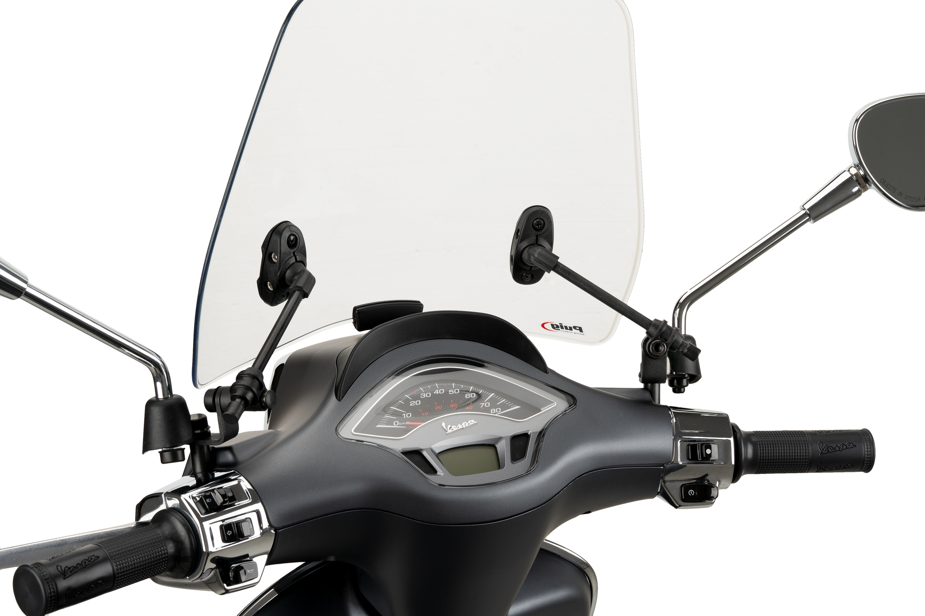 For the installation of the Trafic windshield, the manufacturer offers the piece with a special kit for finished specific models of Scooters. If required, Puig also offers an universal model for those bikes that need it together with a complete fixing kit.