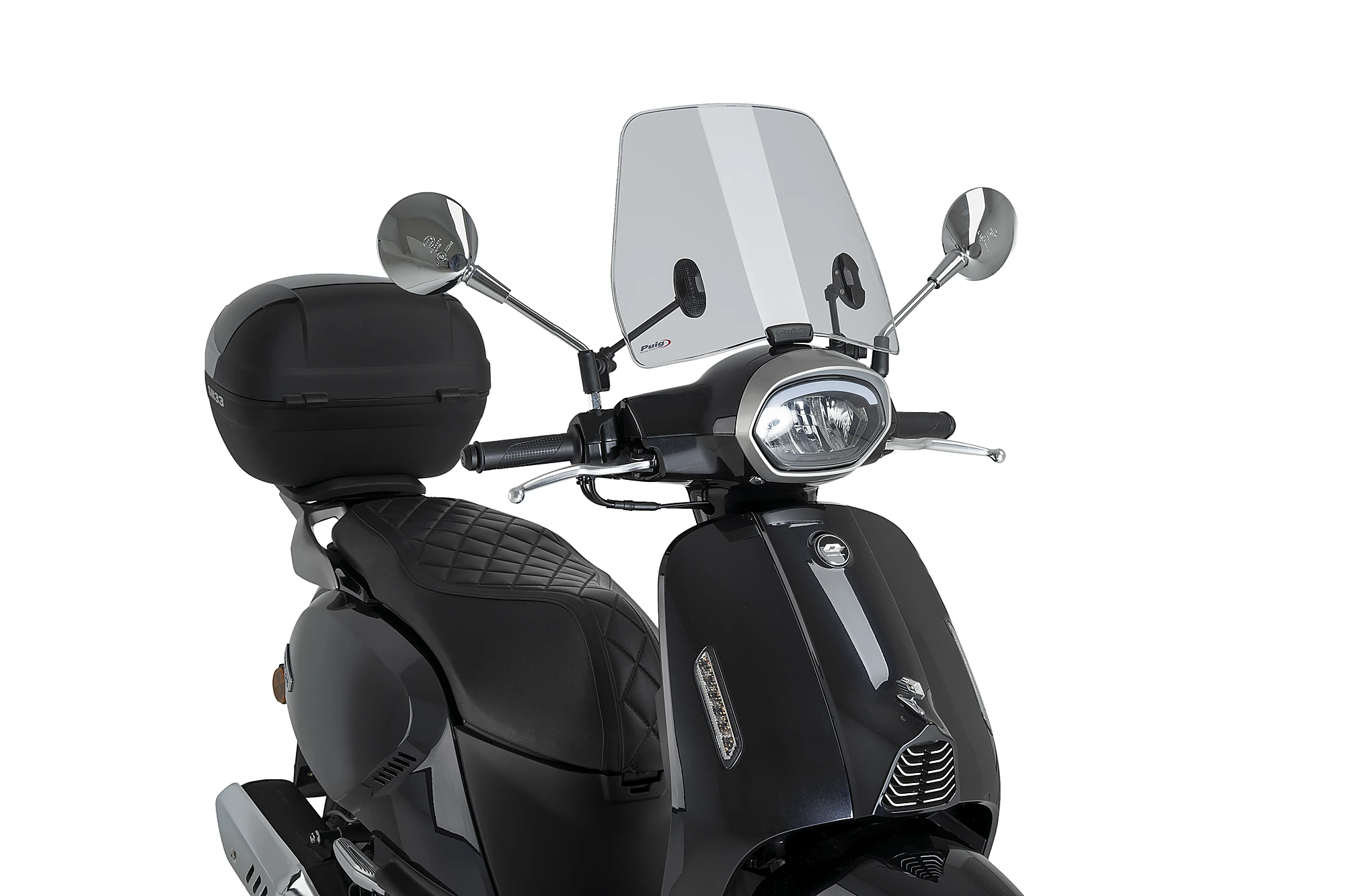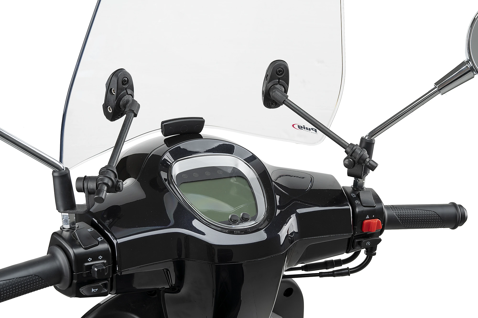 For the installation of the Trafic windshield, the manufacturer offers the piece with a special kit for finished specific models of Scooters. If required, Puig also offers an universal model for those bikes that need it together with a complete fixing kit.