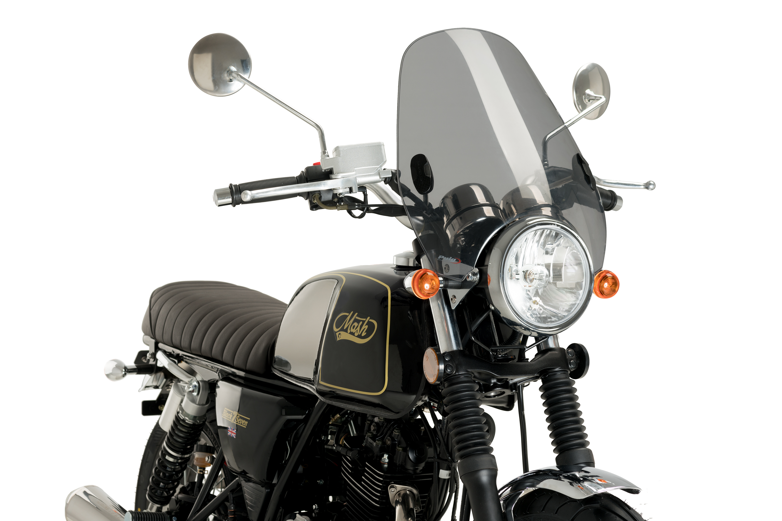 Are you looking for a tall fairing for your bike with a round headlight? The Custom II windshield will be your ideal choice. Manufactured in polycarbonate, material highly resistant to possible impacts and that guarantees a great aerodynamic capacity, it is designed under Puig’s look for Street Screens and we can find it in two finishes, smoked or transparent, so it will be a great complement to your motorcycle.