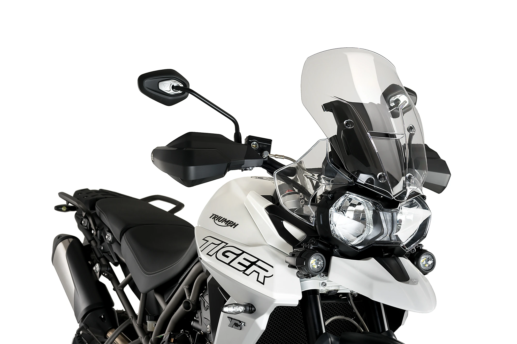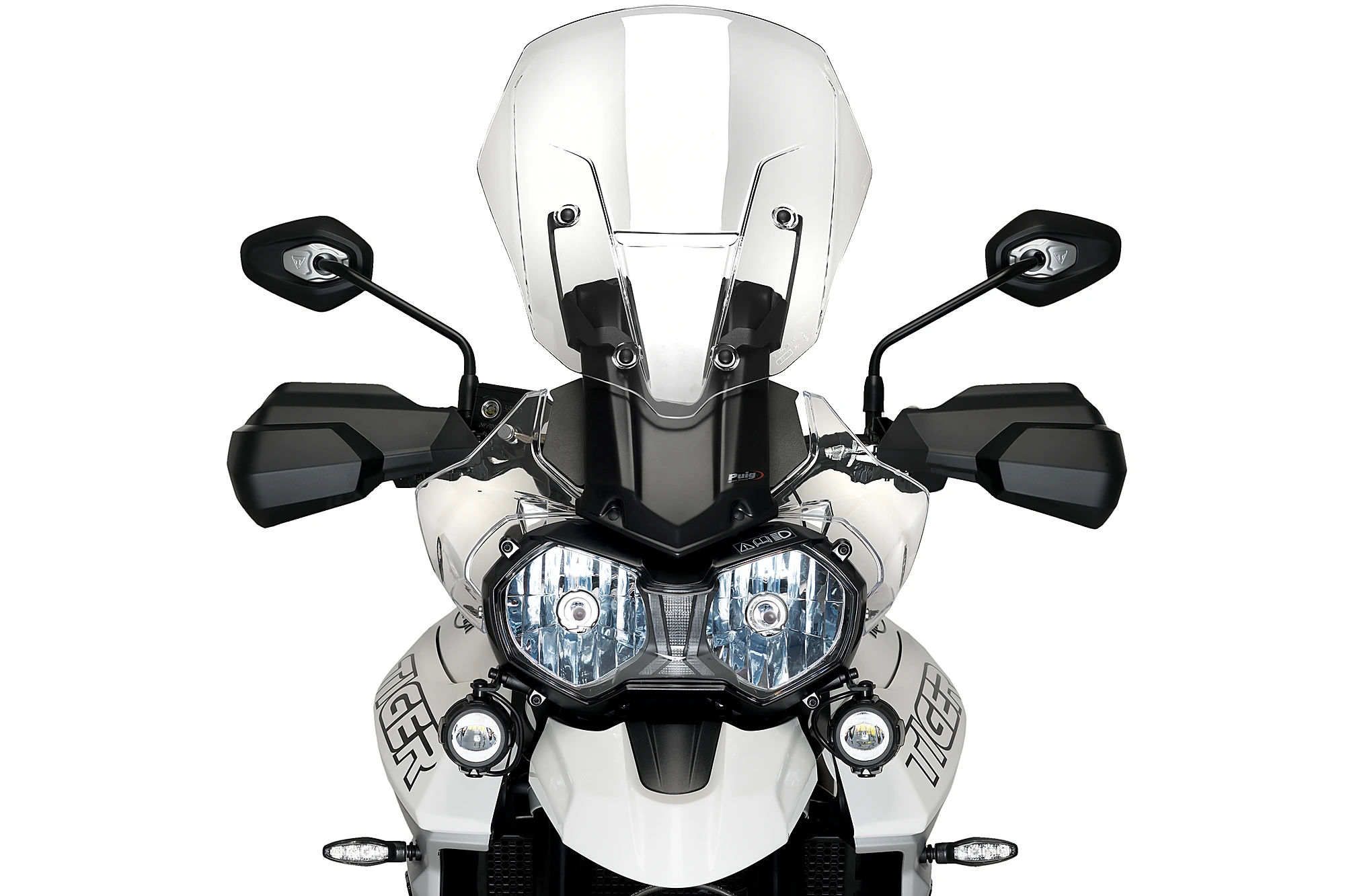 The E.R.S. (Electronic Regulation System) is a plug & play mechanism that offers you the possibility of modifying the screen height of your Triumph Tiger 800 by 150 mm for moments that require high protection such as on expressways or adverse weather conditions, or, on the other side, decrease this height below the original screen for city or off-road driving.