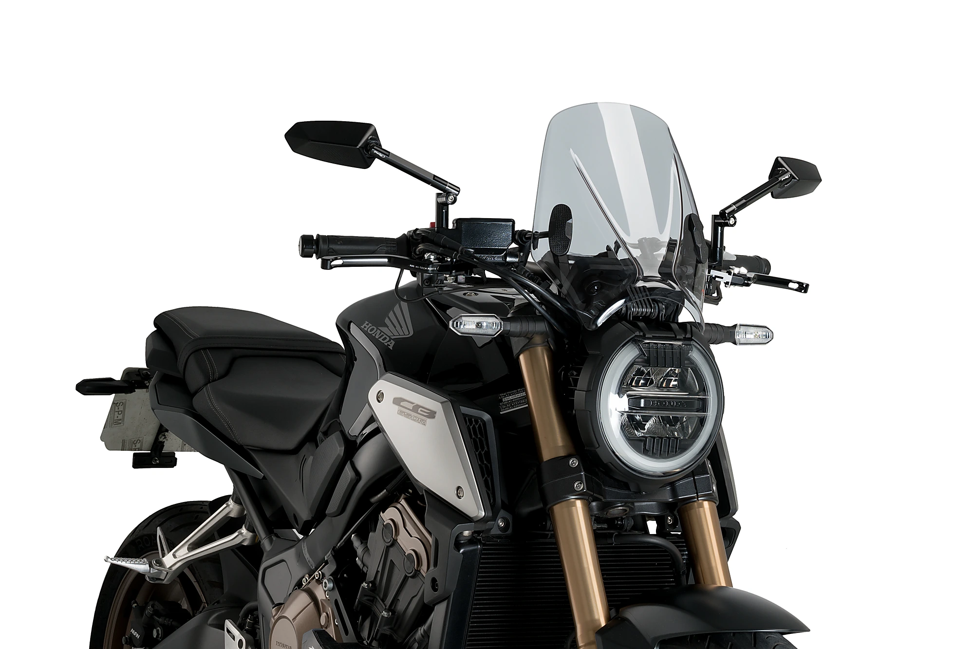 Improve the riding of your motorcycle and give it greater safety with the new Mito windshield from Puig. Thanks to its sober lines, its modernized classic character will give your vehicle more personality, being adaptable to motorcycles with round headlights.