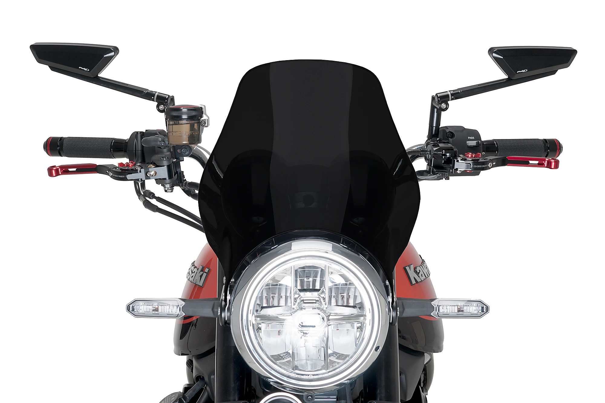 If your motorcycle is Naked style and you are looking for a short beacon for a round headlight, the Naked fairing from the Puig Street Screens line will be your best ally.