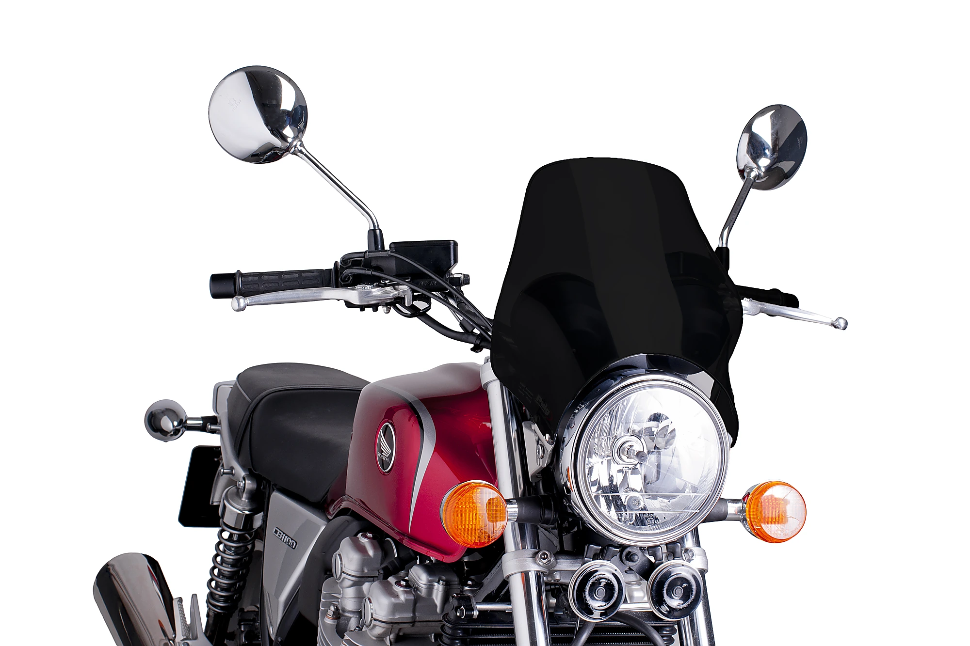 If your motorcycle is Naked style and you are looking for a short beacon for a round headlight, the Naked fairing from the Puig Street Screens line will be your best ally.