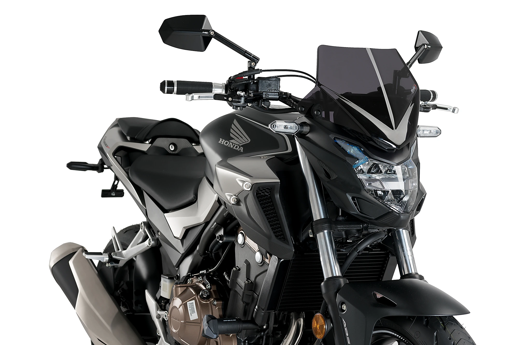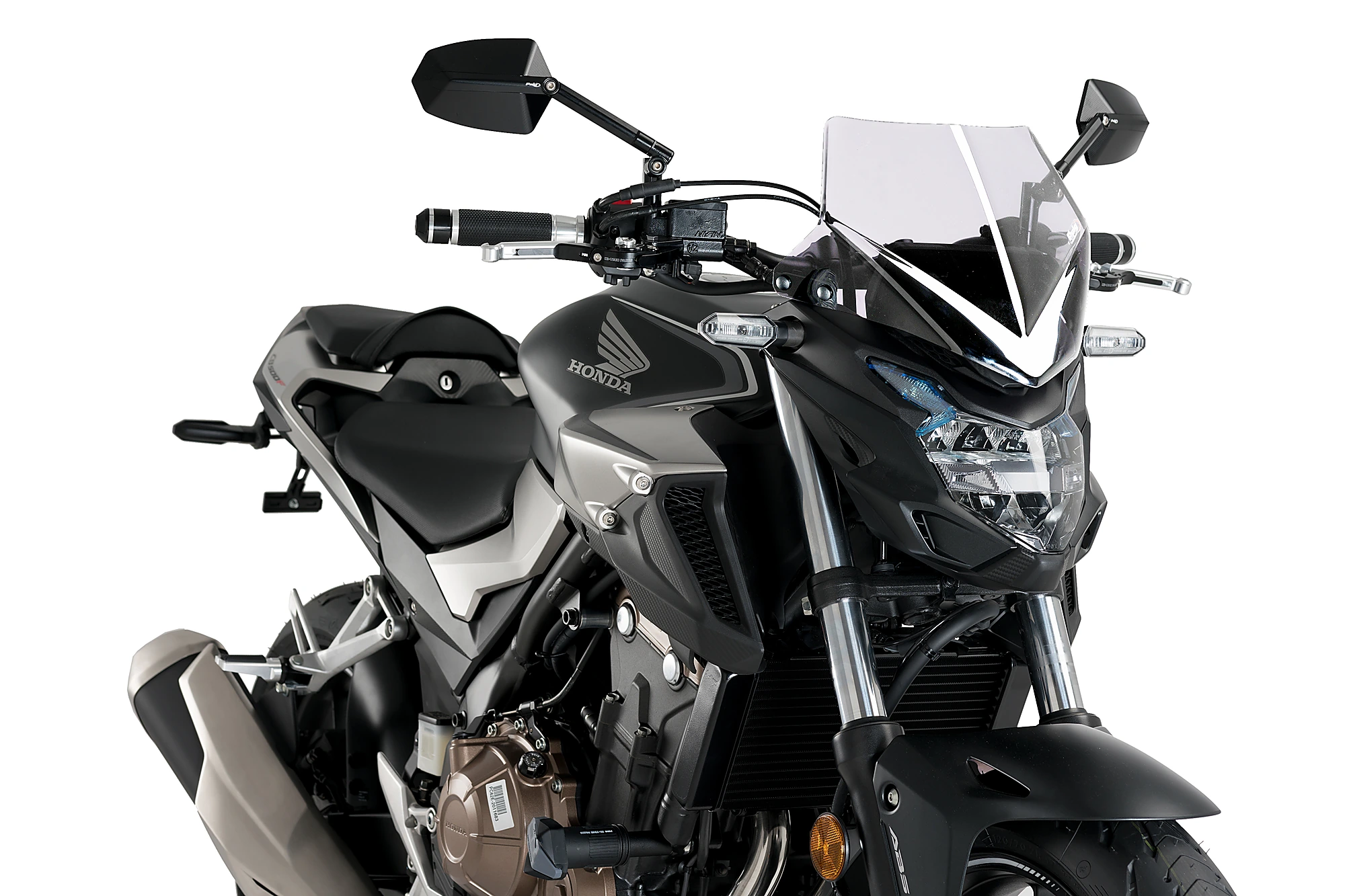 The NG Sport screen for the Honda CB 500F 17'- is available in clear, smoked, dark smoked, and black. For users looking for greater aerodynamic protection, the Touring version is available.