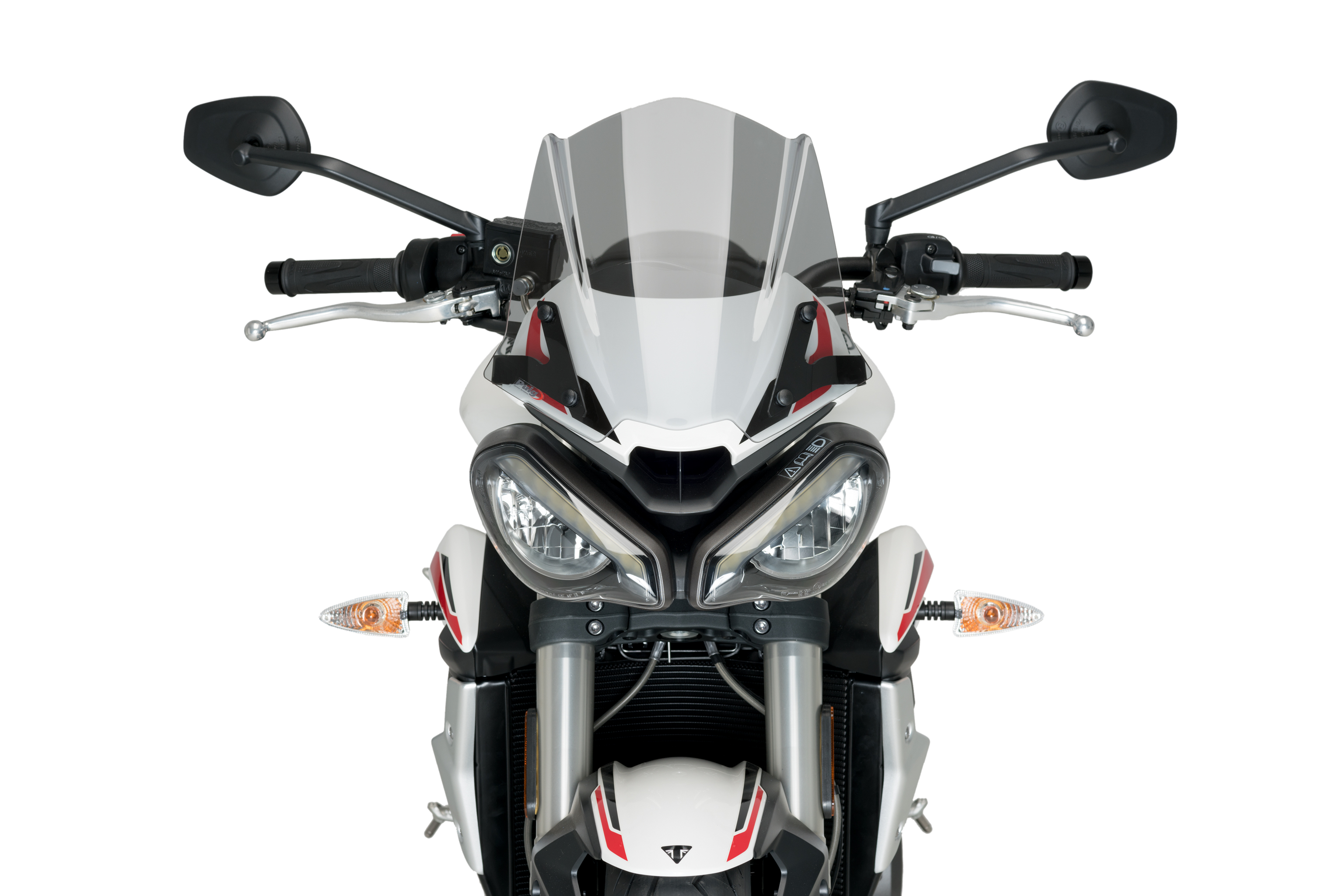 This Sport windshield is perfect if you are looking to maintain the impeccable design of your Triumph Street Triple S / R / RS while improving its air resistance. Its aesthetic merges with the minimalist and simple lines of this elegant naked, making it your best travel partner. Thanks to its shapes, it reduces the direct impact of the wind on the torso and arms, offering a more comfortable and less exhausting ride. The ideal balance between functionality and sport design.