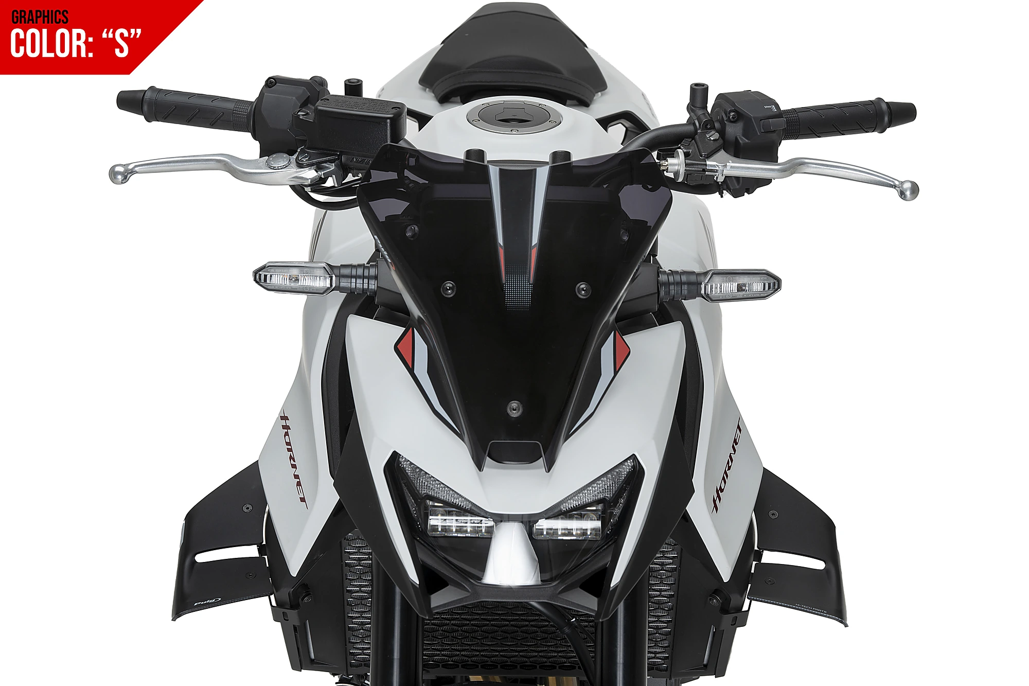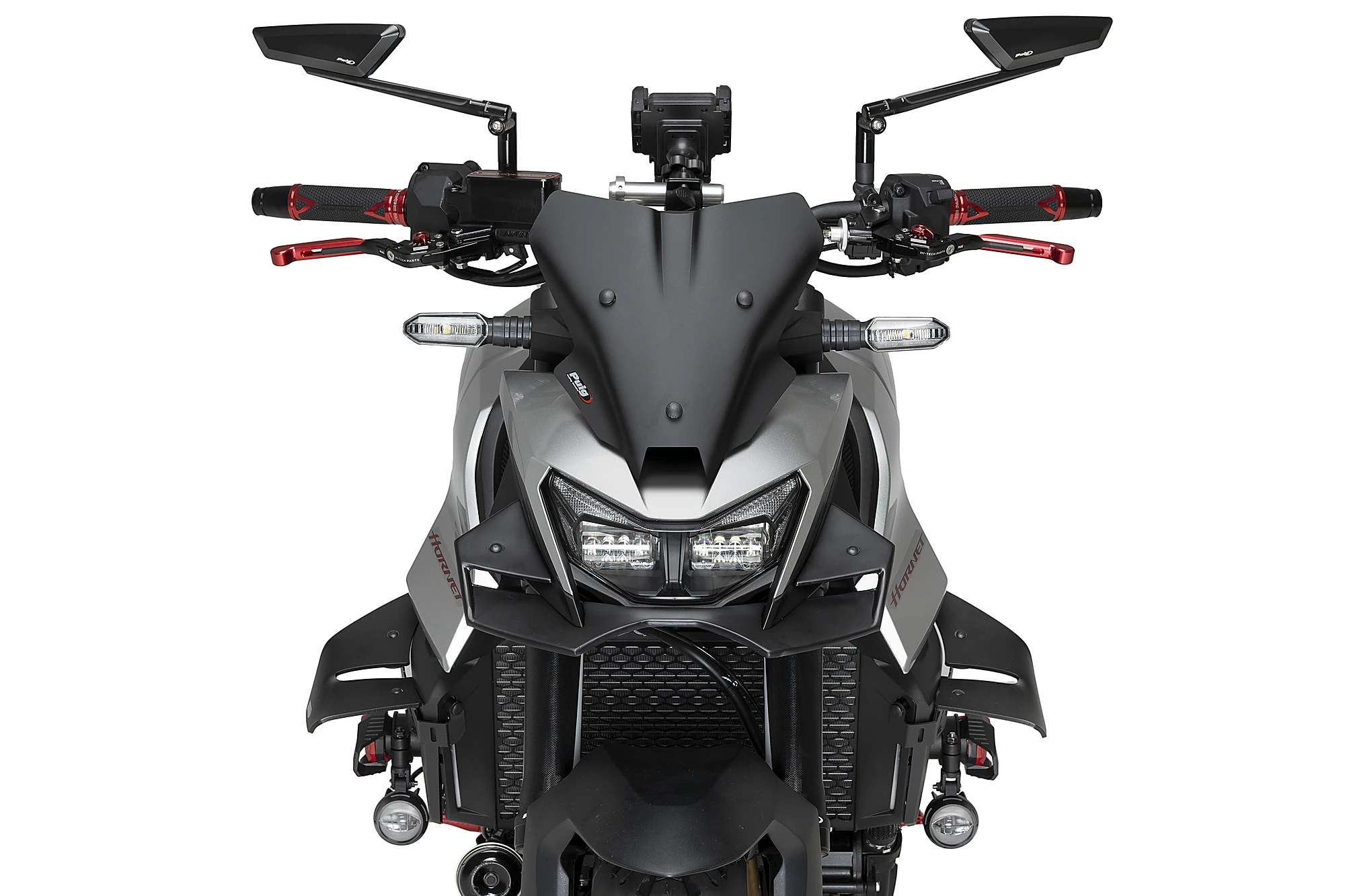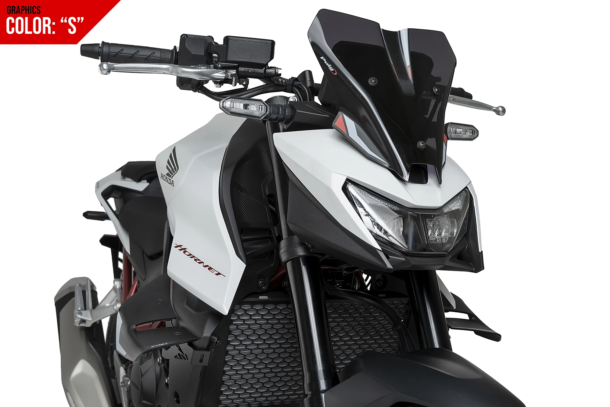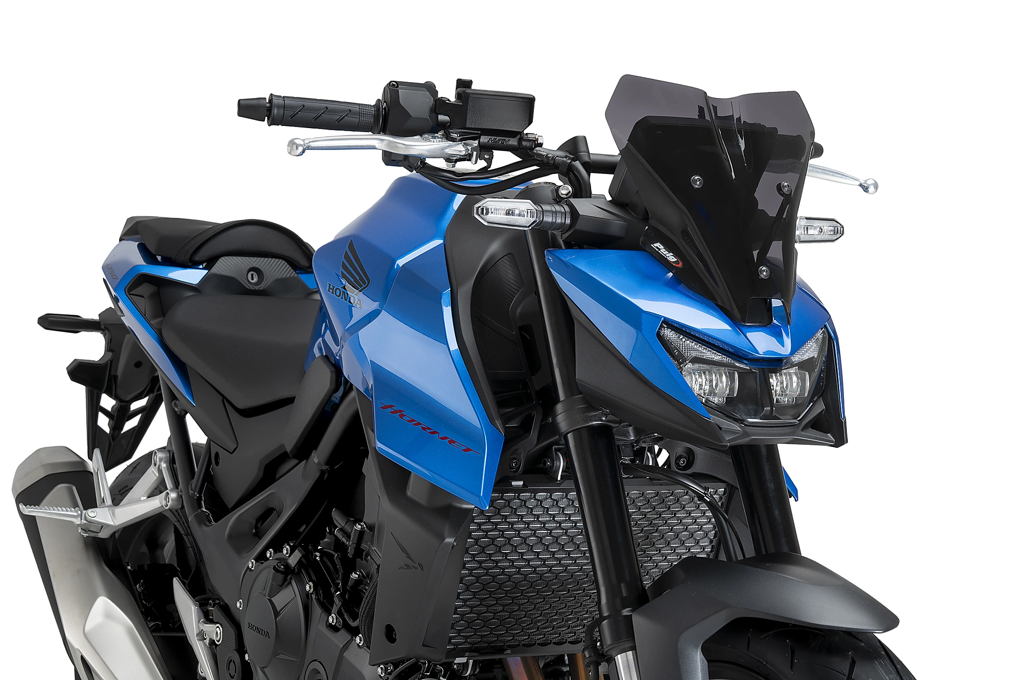 Measuring 265 mm wide and 275 mm high, the Puig NG Sport Windshield is 35 mm taller than the dashboard of the Honda CB750 Hornet, subtly but effectively improving aerodynamics without compromising the bike’s compact design.