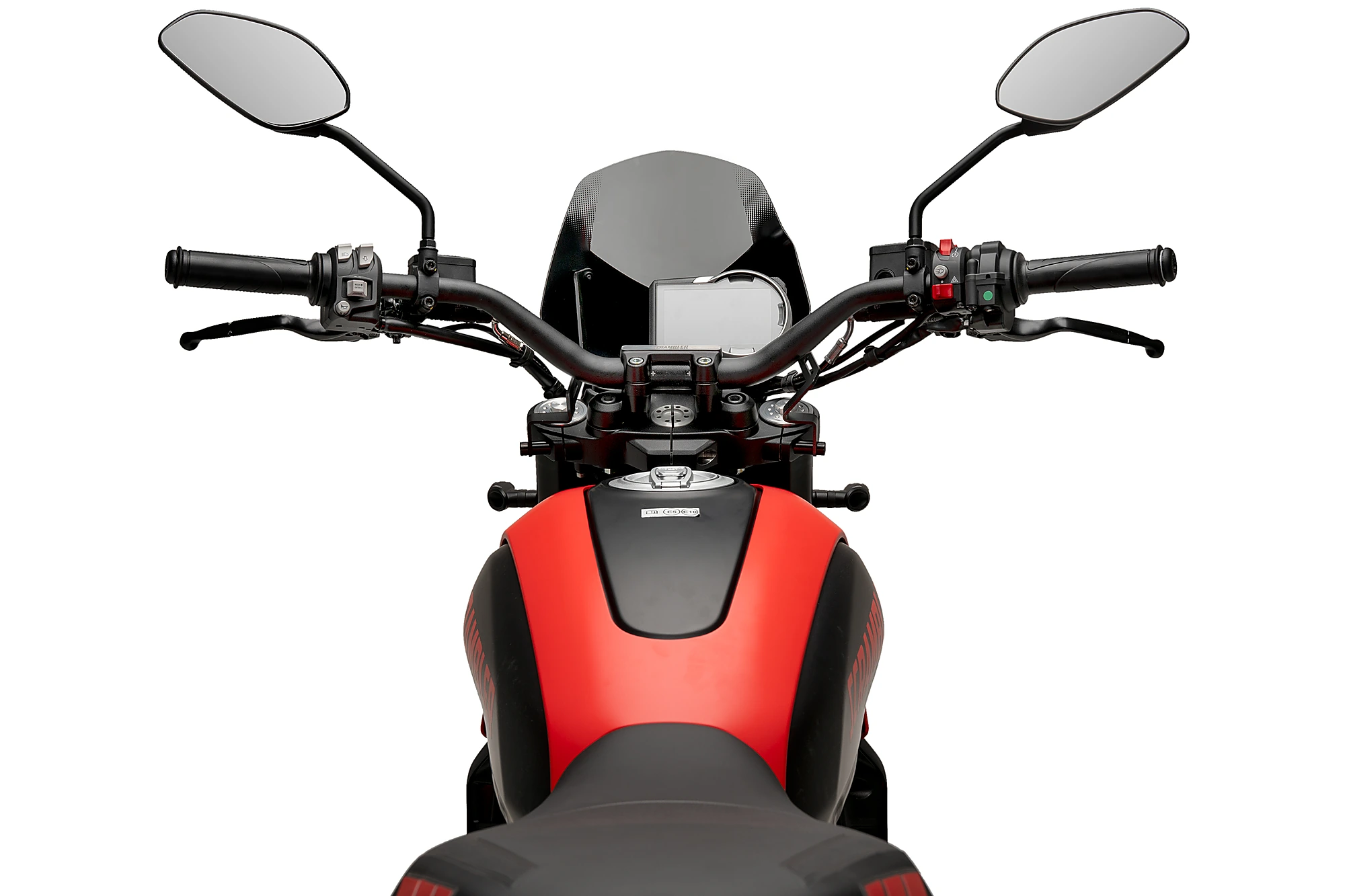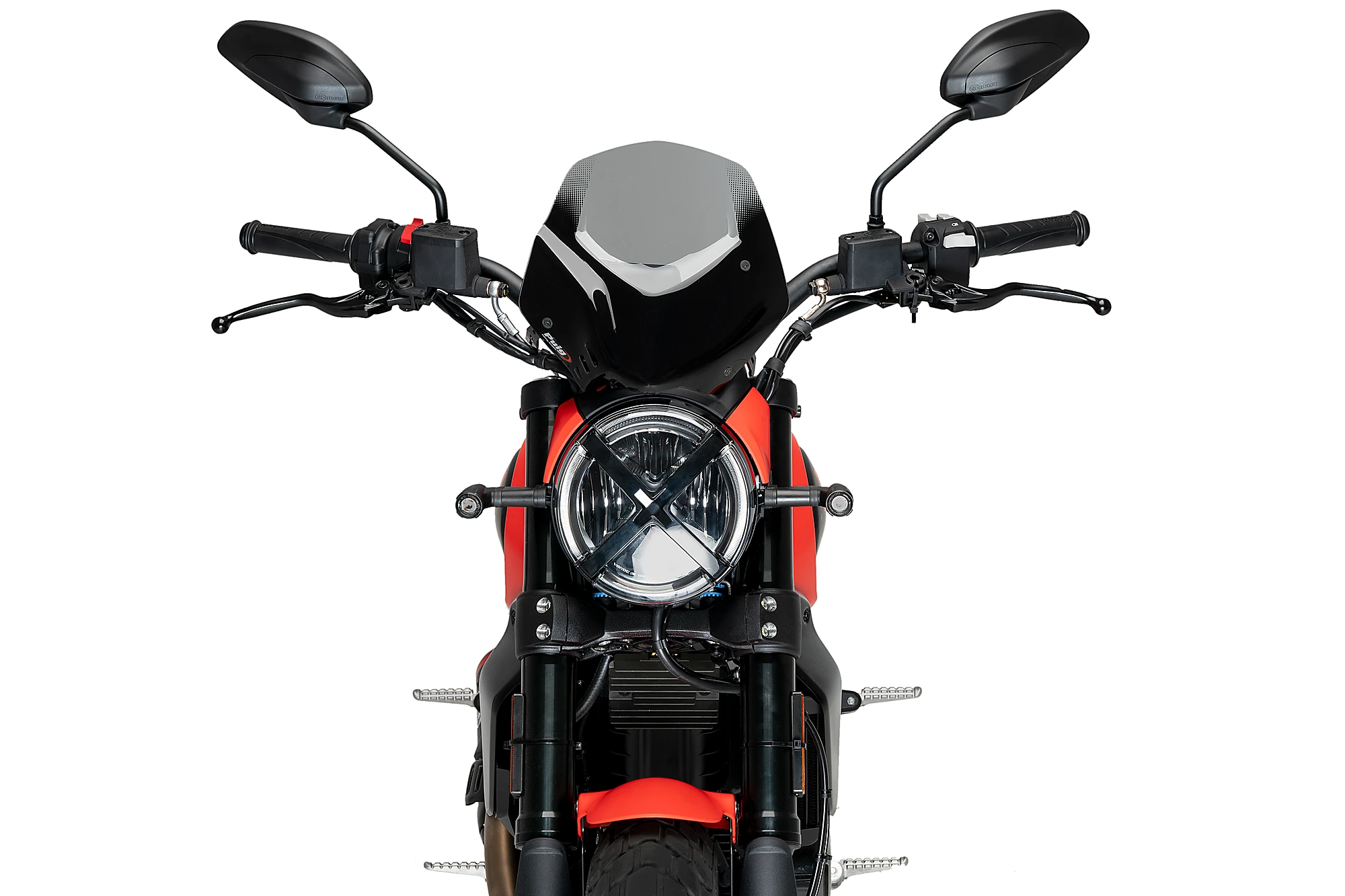Designed specifically for the Ducati Scrambler 23', the naked NG Sport screen is characterized by its asymmetry, with a surface on the right side to avoid contact with the Scrambler's clock, which is also asymmetrical. While in the left area the surfaces are much closer to the handlebars to achieve more protection.