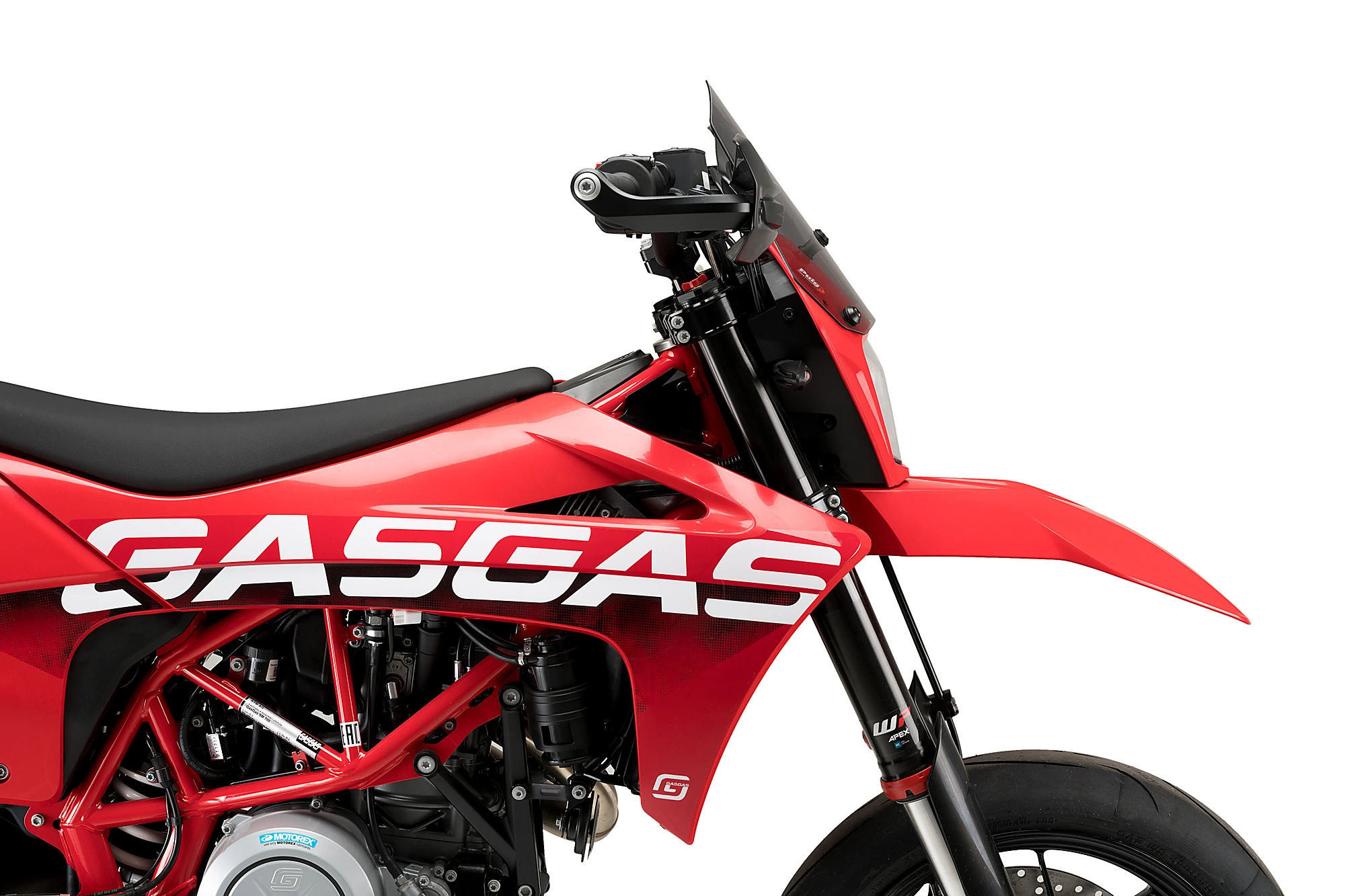 Designed specifically for the Gas Gas SM 700'22, its lines fit perfectly on the front of this aggressive supermoto, providing extra aerodynamic protection.