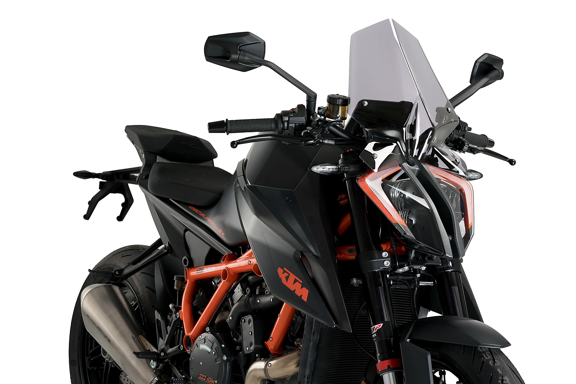 The NG Touring windshield for the KTM 1290 Superduke R adapts to your motorbike of aggressive and minimalist lines thanks to its simple but sharp shapes, which give your bike an elegant and aggressive aesthetic. This windshield adapts to your motorcycle thanks to its geometric line shapes that perfectly fits the look of this aggressive naked. Its shapes wrap the headlight on the sides, continuing the lines and creating a stylized piece that, thanks to its central edge, "cuts" the air in two and diverts it to both sides of the rider for greater comfort and less driving fatigue.