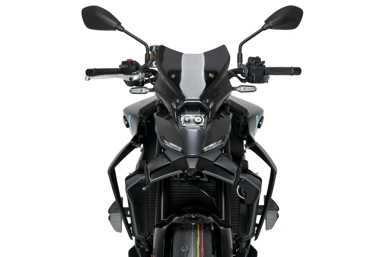 El alerón frontal Naked para la nueva Yamaha MT-09 ha sido diseñado para reforzar la agresividad del frontal de la moto, alineándose con las líneas marcadas y angulosas del diseño original. En combinación con el nuevo faro de la MT-09, este alerón aporta un conjunto más afilado, aerodinámico y deportivo, realzando la estética competitiva de la motocicleta.