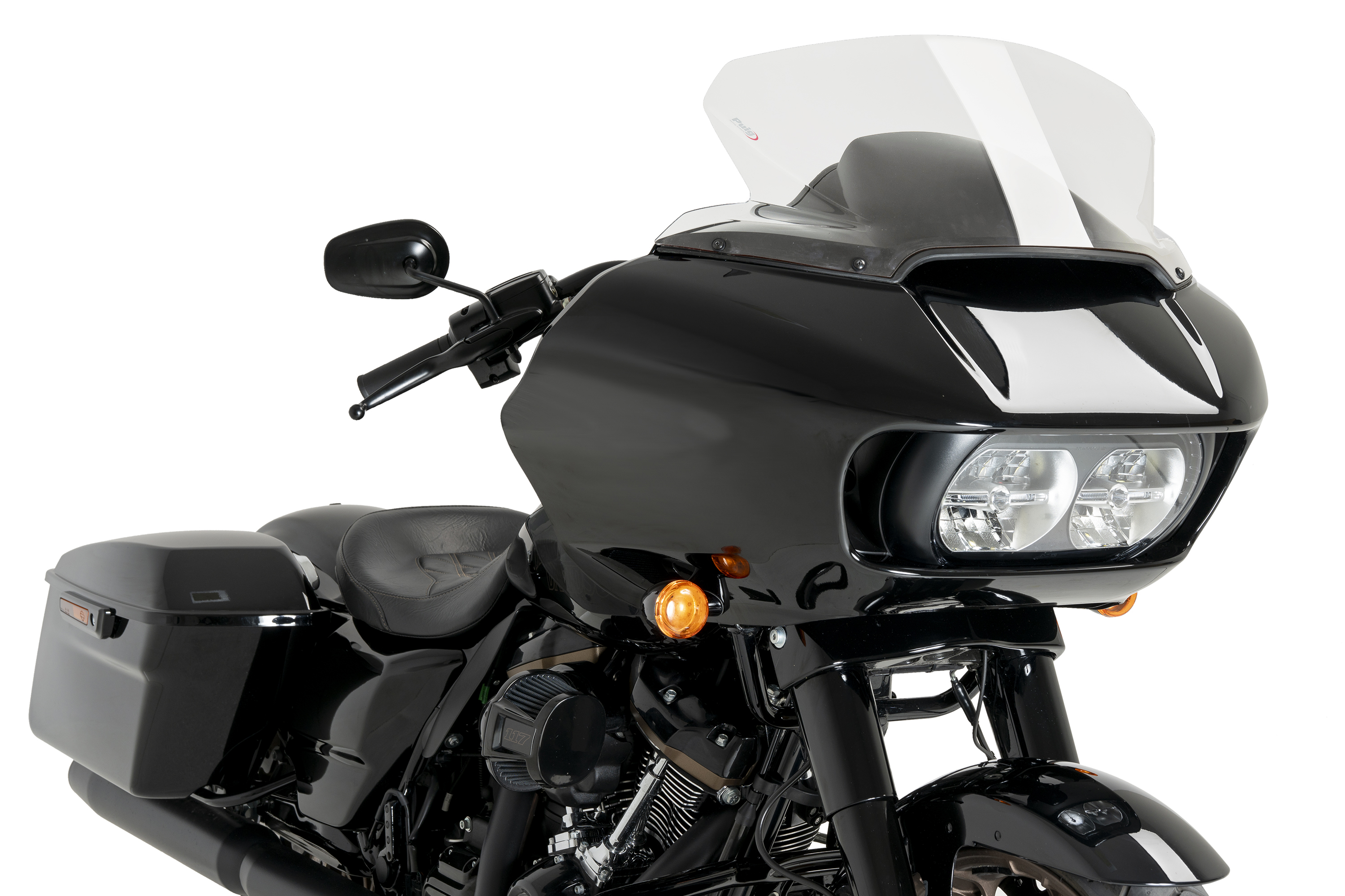 Para la Harley Davidson Road Glide 14’-23’, la versión touring está disponible en color ahumado, ahumado oscuro y transparente.