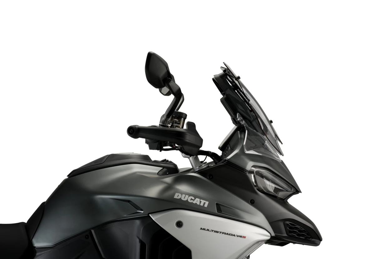 La nueva cúpula Sport de Puig para la Ducati Multristrada V4 2021 tiene un depurado diseño deportivo y su aerodinámica ha sido minuciosamente estudiada para lograr la máxima protección para el piloto, primando por encima de todo, el estilo del reconocido modelo de motocicleta italiana.