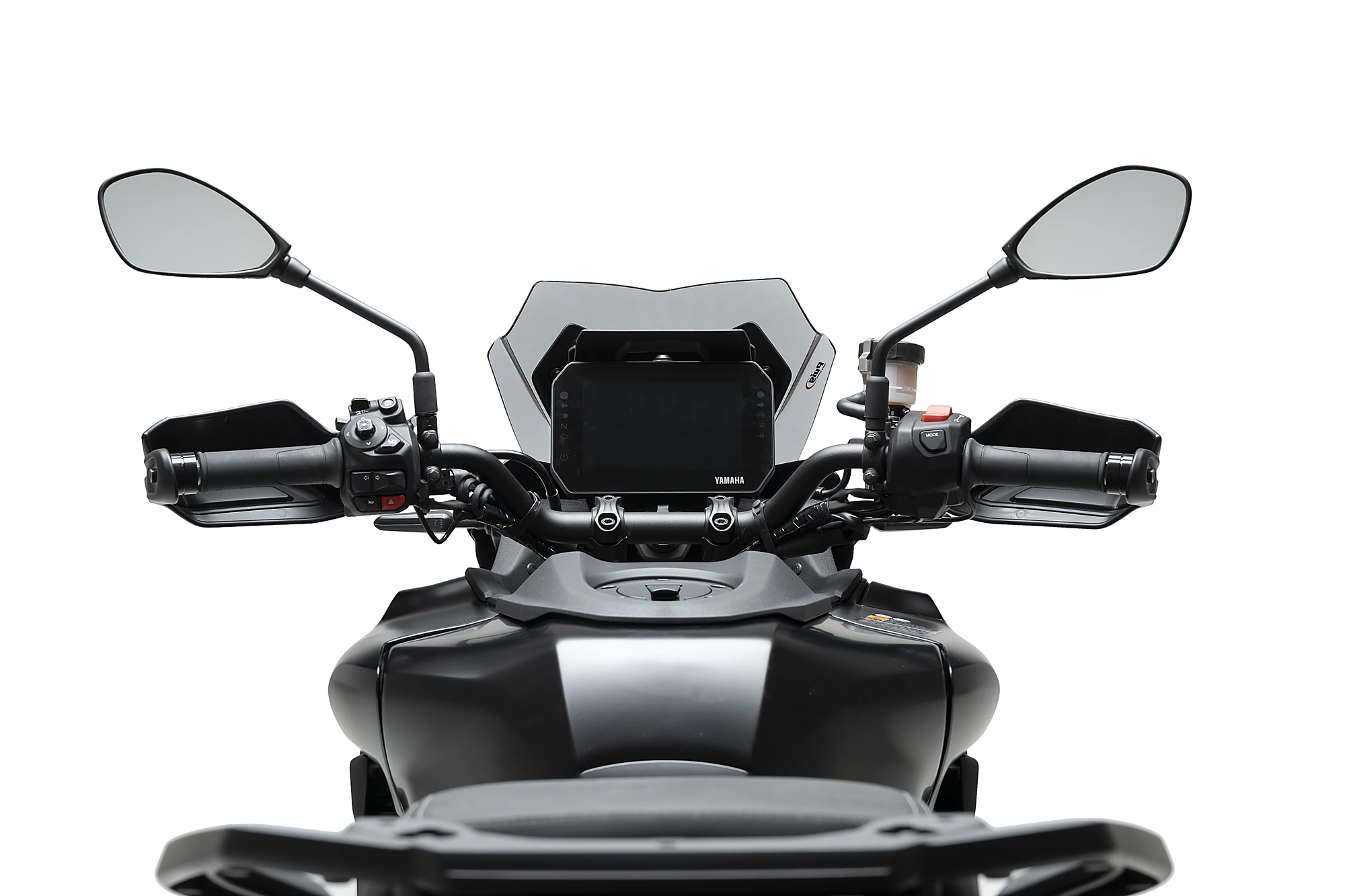 Su diseño compacto y refinado permite mantener un amplio campo de visión por encima de la pantalla, lo que se traduce en una mayor sensación de libertad, movilidad sobre la moto y confort durante la conducción. Gracias a la regulación automática de altura que viene de serie en la Tracer 900 GT, es posible ajustar la cúpula en la posición más elevada para optimizar la protección aerodinámica incluso con la pantalla Sport montada.