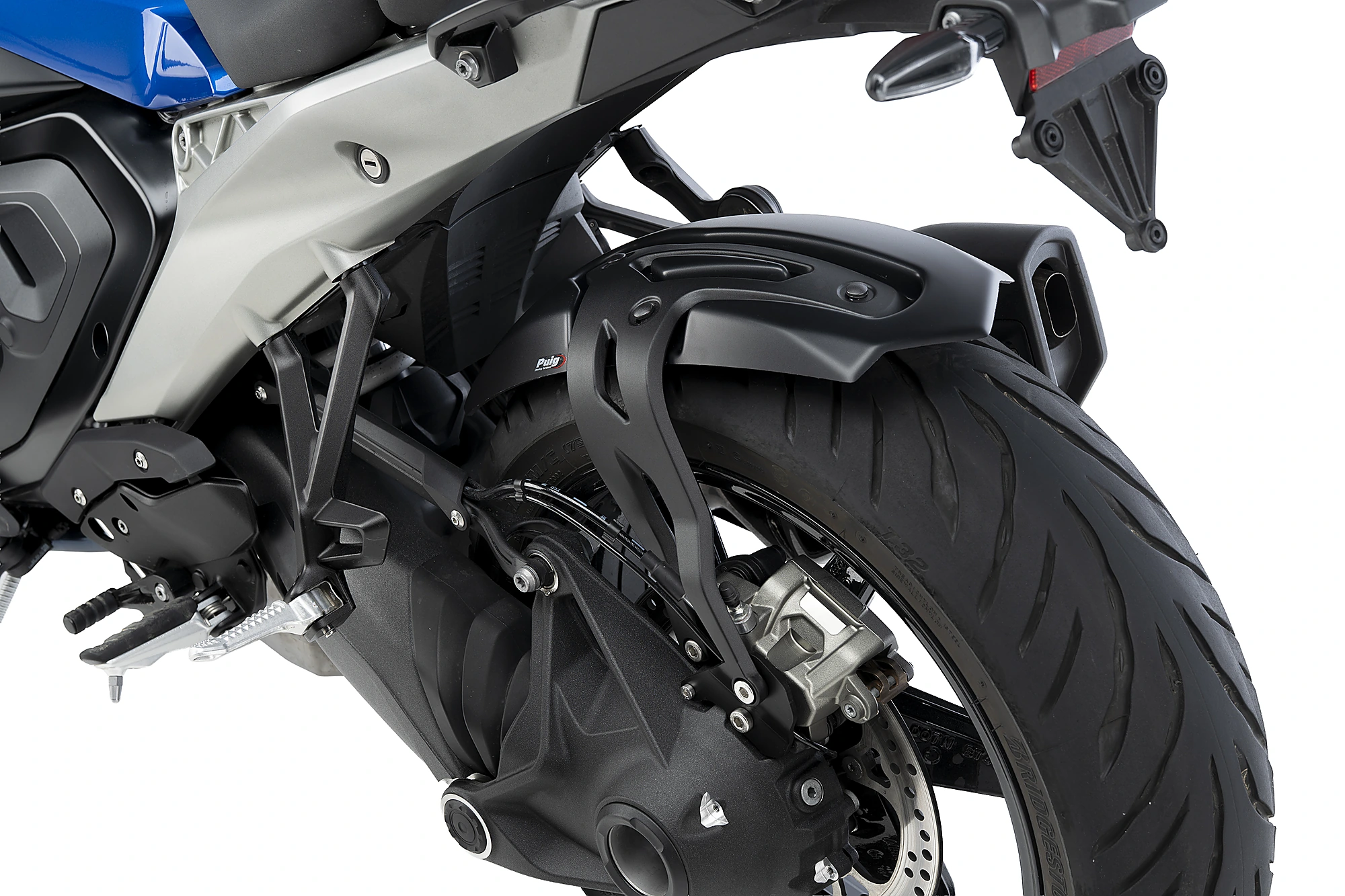 En este caso, Puig da la posibilidad de escoger entre tres modelos diferentes de guardabarros para personalizar la motocicleta a nuestro antojo. Guardabarros trasero “S”, ideal para modelos Naked; guardabarros trasero tipo “R”, específico para motocicletas R y guardabarros trasero con soporte de aluminio, diseño rompedor con soportes de aluminio de inyección fijado al basculante de la moto, específicamente creado para modelos Crosstourer.