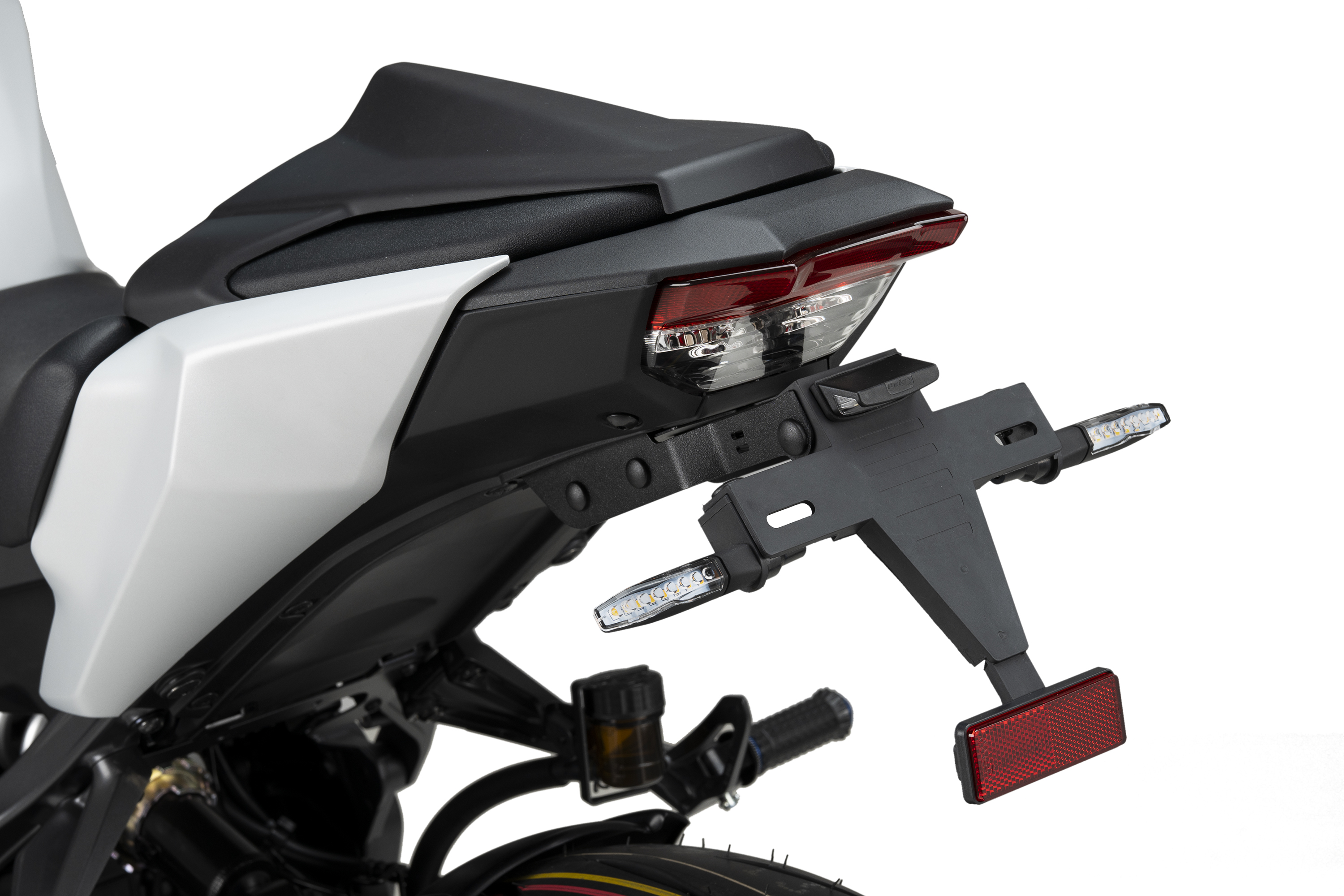 NO COMPATIBLE CON MALETAS LATERALES La referencia del portamatricula no incluye el kit de cableado plug&play del grupo de iluminación. Vea la referencia más abajo en Complementos si está disponible.