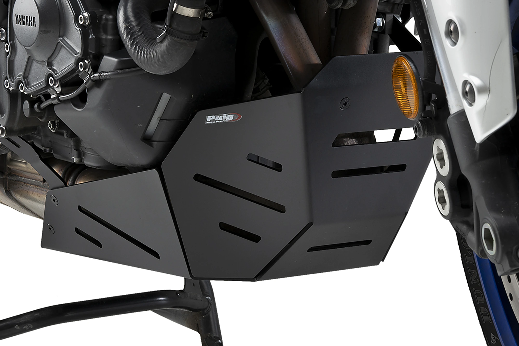 Se adapta perfectamente a la parte inferior de la moto, integrándose en el conjunto a la vez que le proporciona una imagen más aventurera y personalizada. Su instalación no afecta en la aerodinámica de la moto.