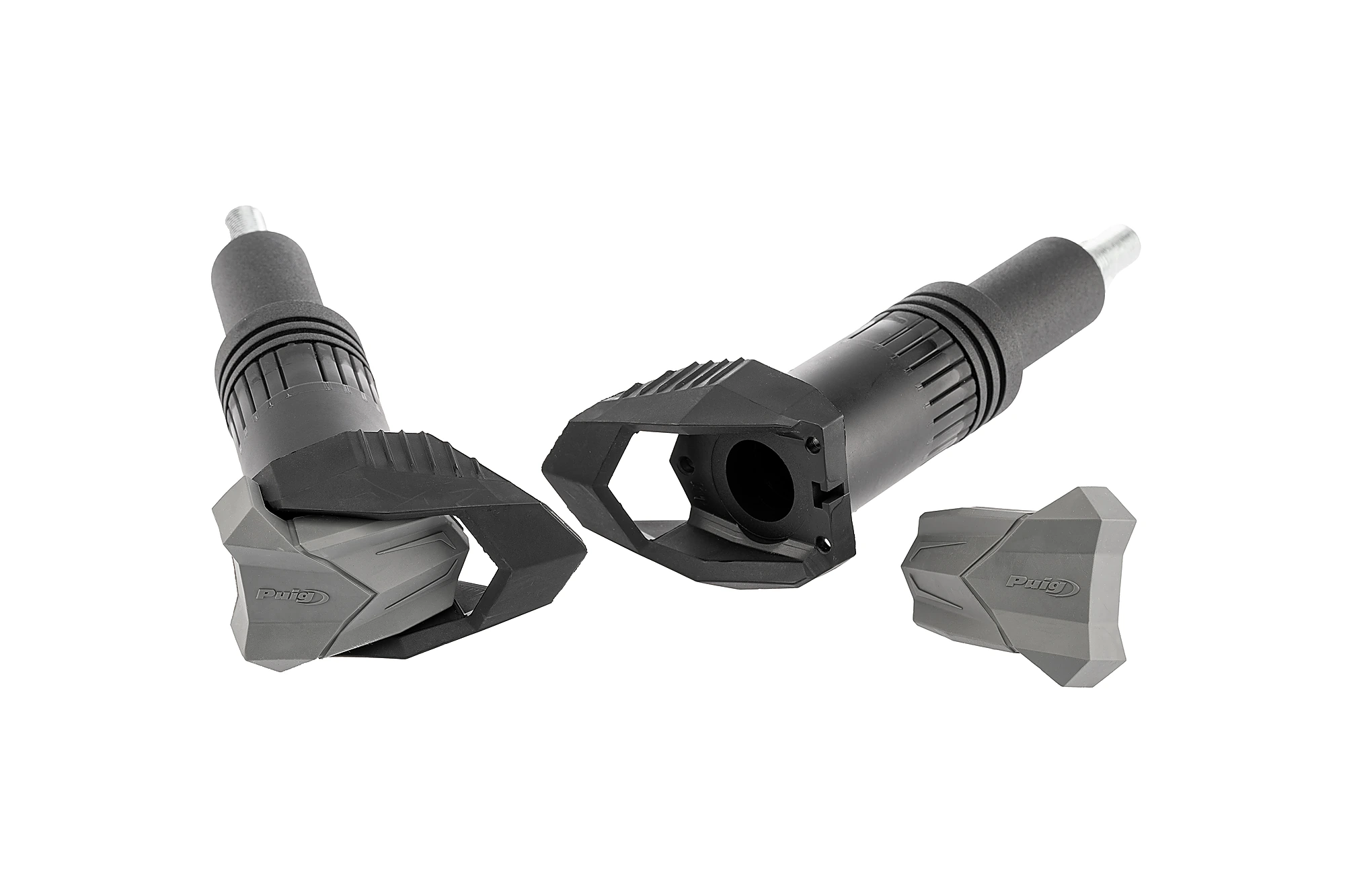 El protector se sirve con la goma gris por defecto, pero Puig tiene disponible una gran variedad de colores para que se adapte a la perfección a la imagen a tu moto. Además de los recambios para las gomas, Puig dispone también de recambios para los topes de Nylon.