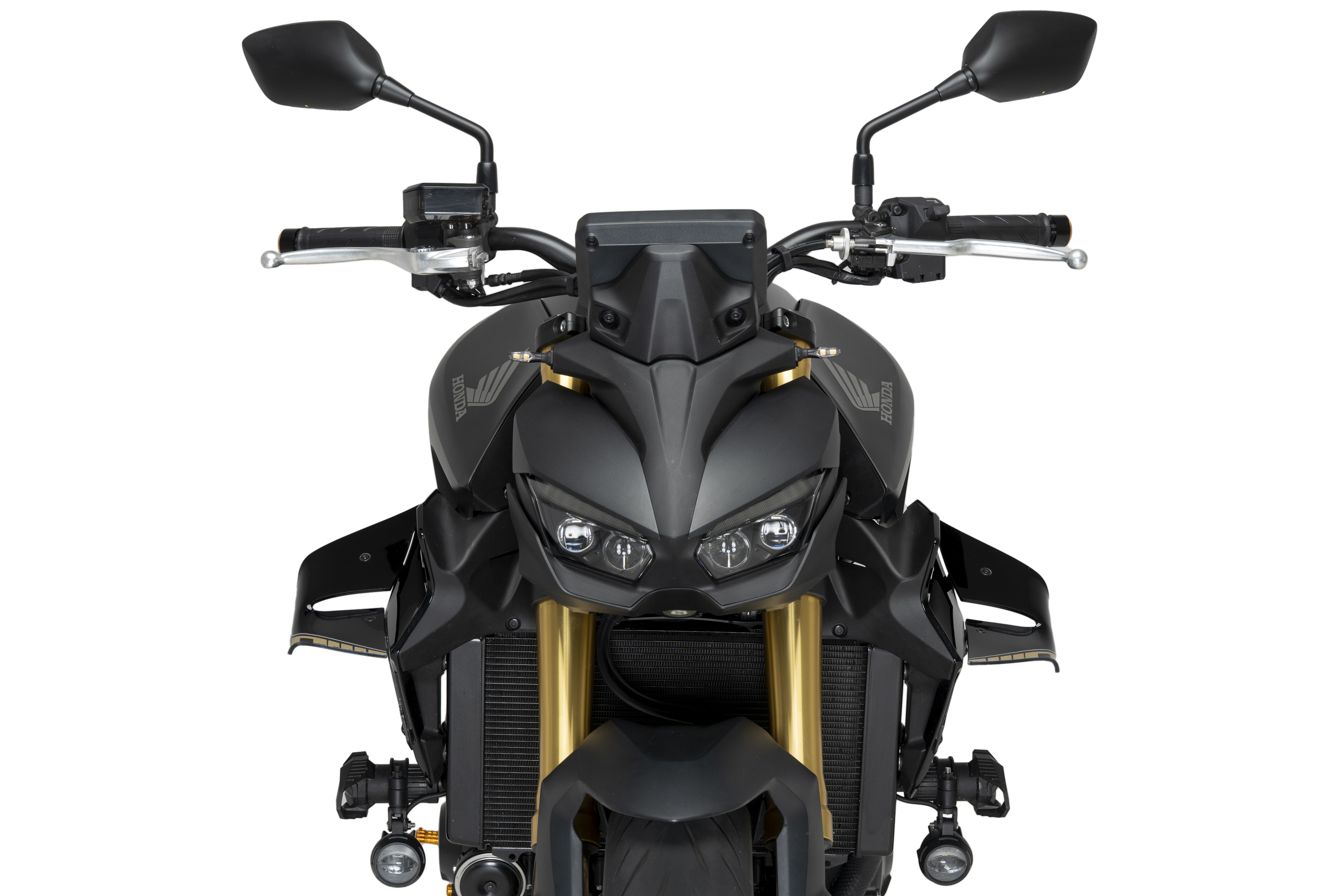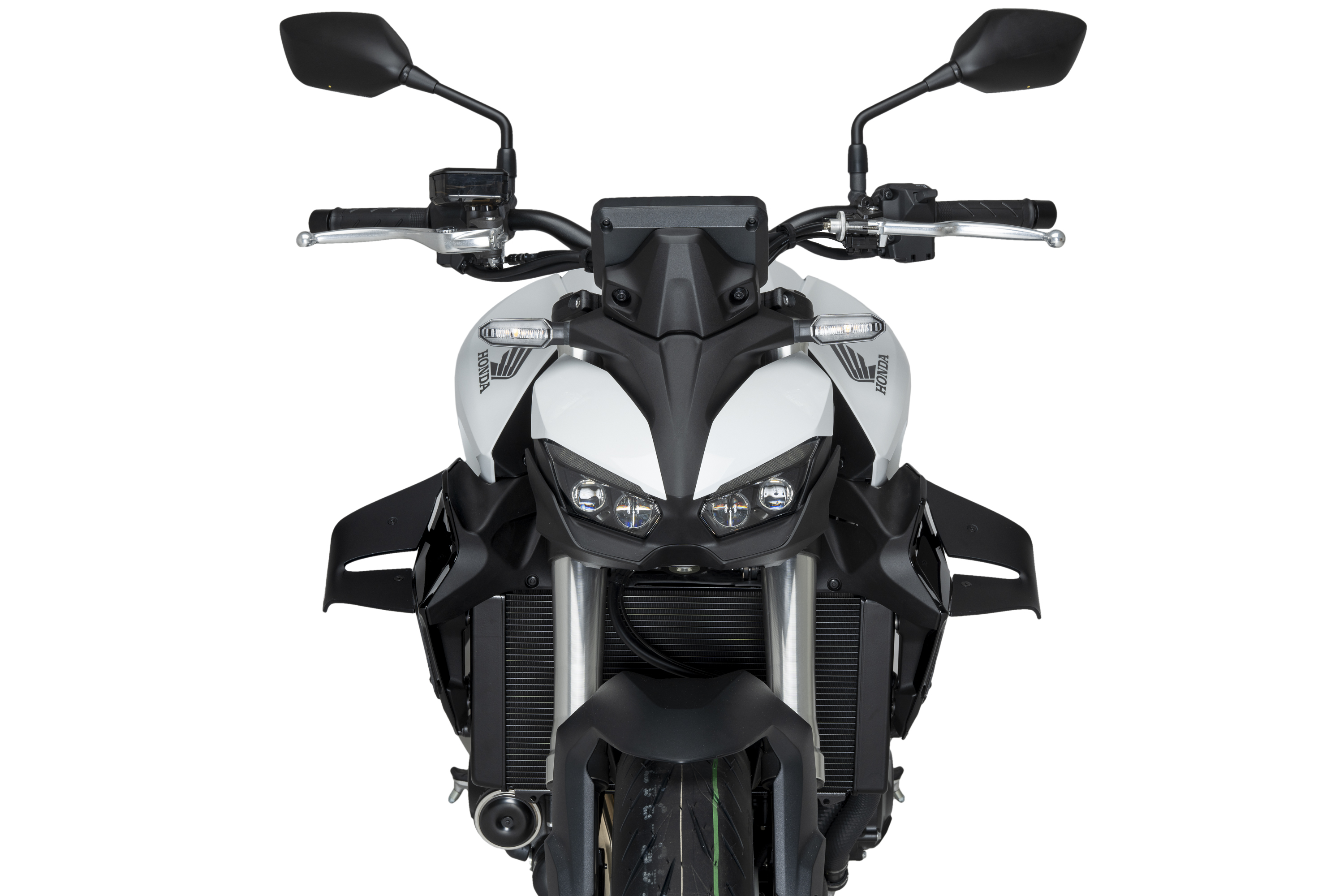 Dans cette optique, ils ont été spécialement conçus pour la nouvelle Honda CB1000 Hornet, intégrant un système innovant de double aile qui maximise l’appui aérodynamique (downforce) sur l’essieu avant sans affecter de manière significative le coefficient de traînée (Cx) de la moto.