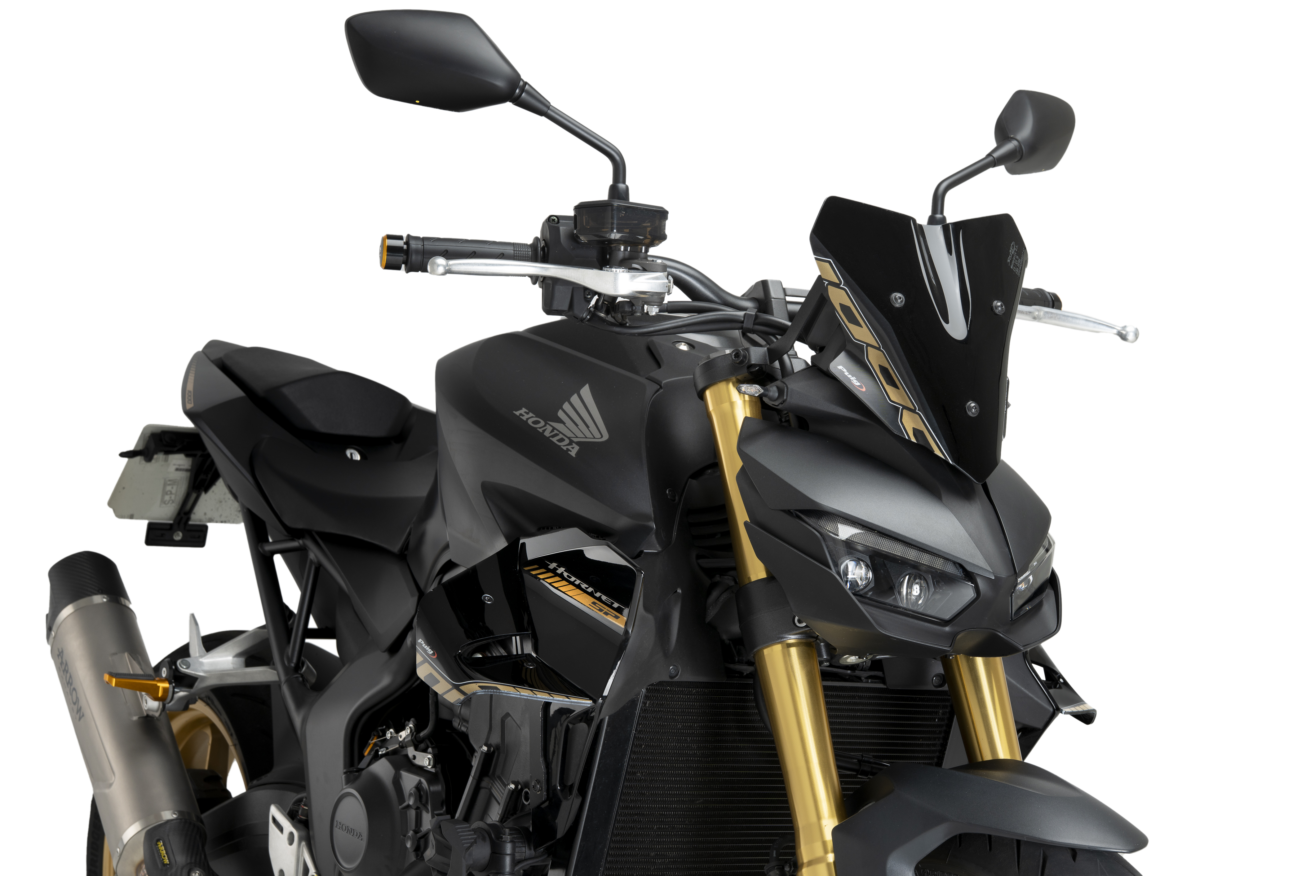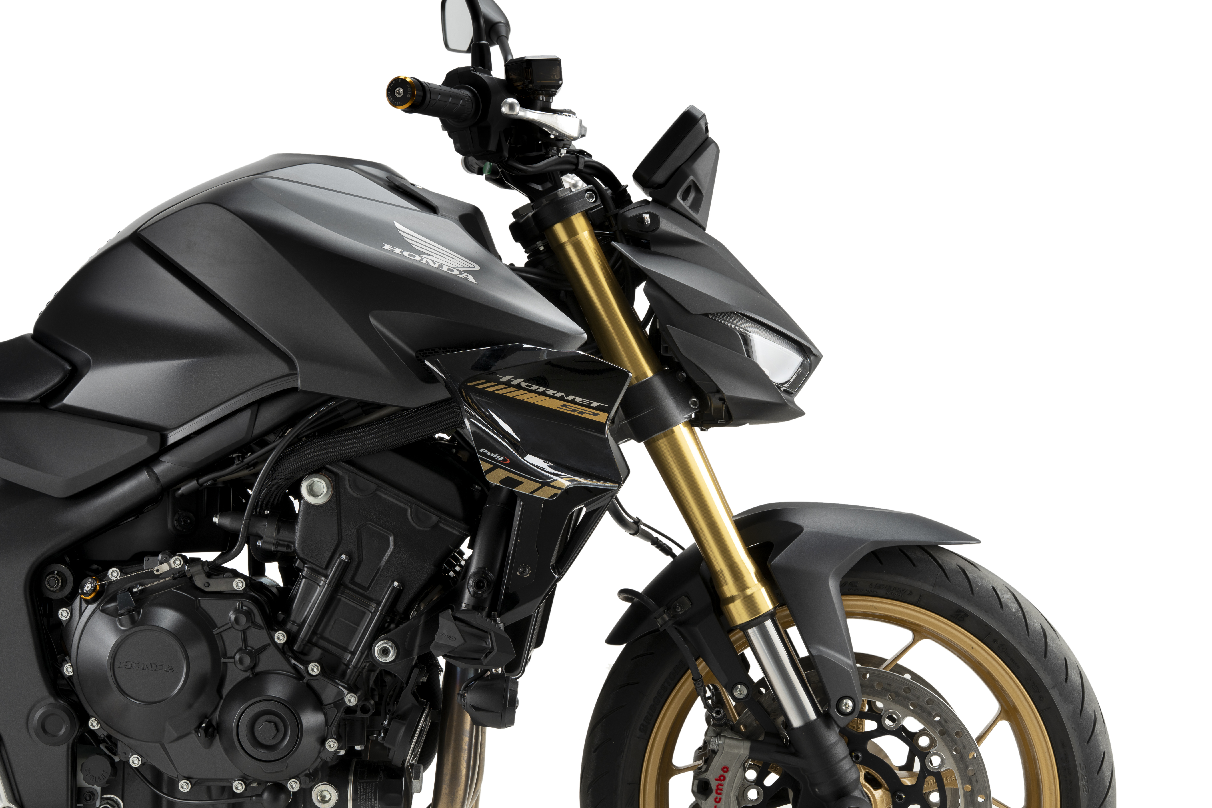 Livré avec des supports en aluminium de 3 mm avec finition noire brillante, identique aux caches latéraux originaux de la Honda CB1000 Hornet.