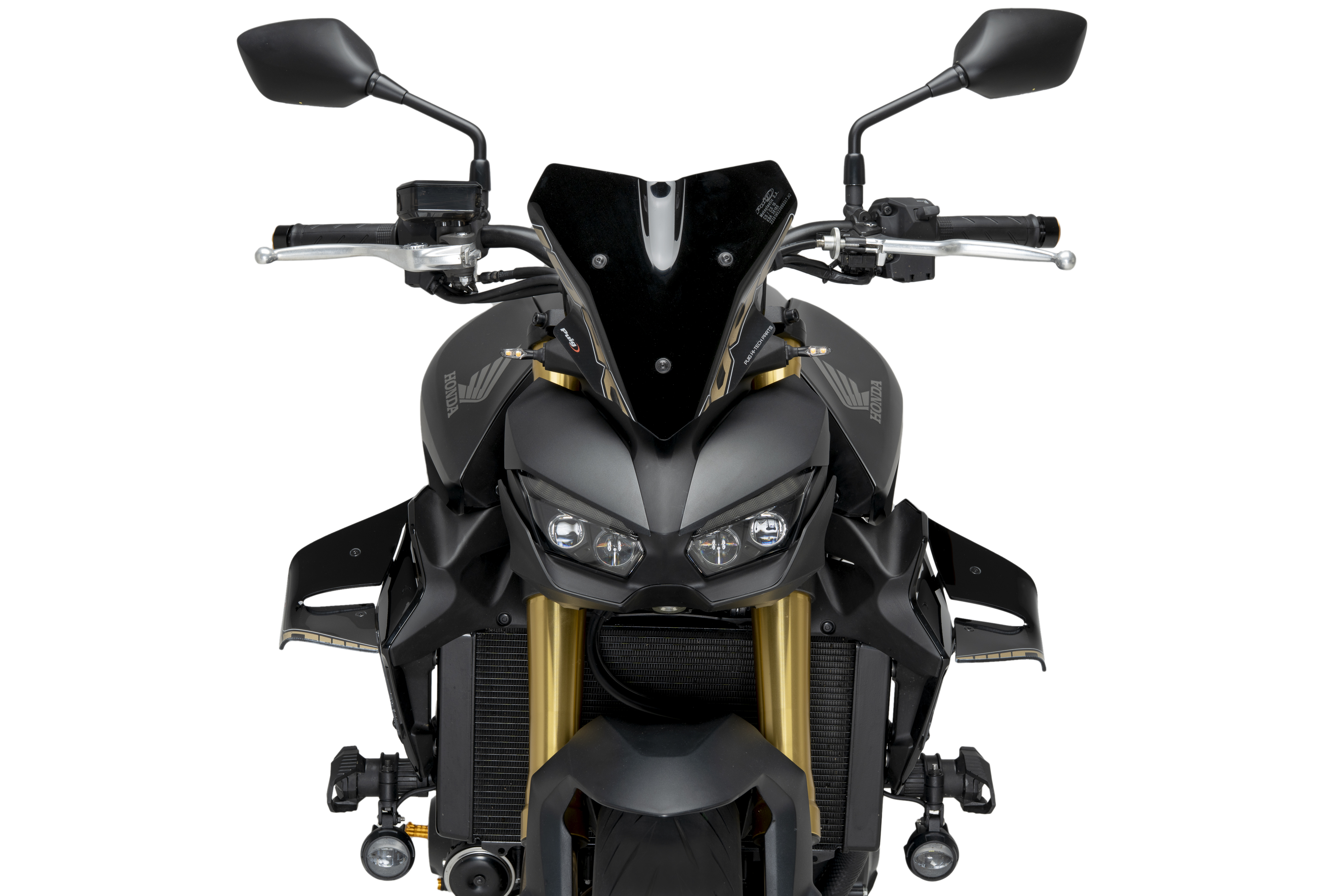 Dans cette optique, ils ont été spécialement conçus pour la nouvelle Honda CB1000 Hornet, intégrant un système innovant de double aile qui maximise l’appui aérodynamique (downforce) sur l’essieu avant sans affecter de manière significative le coefficient de traînée (Cx) de la moto.