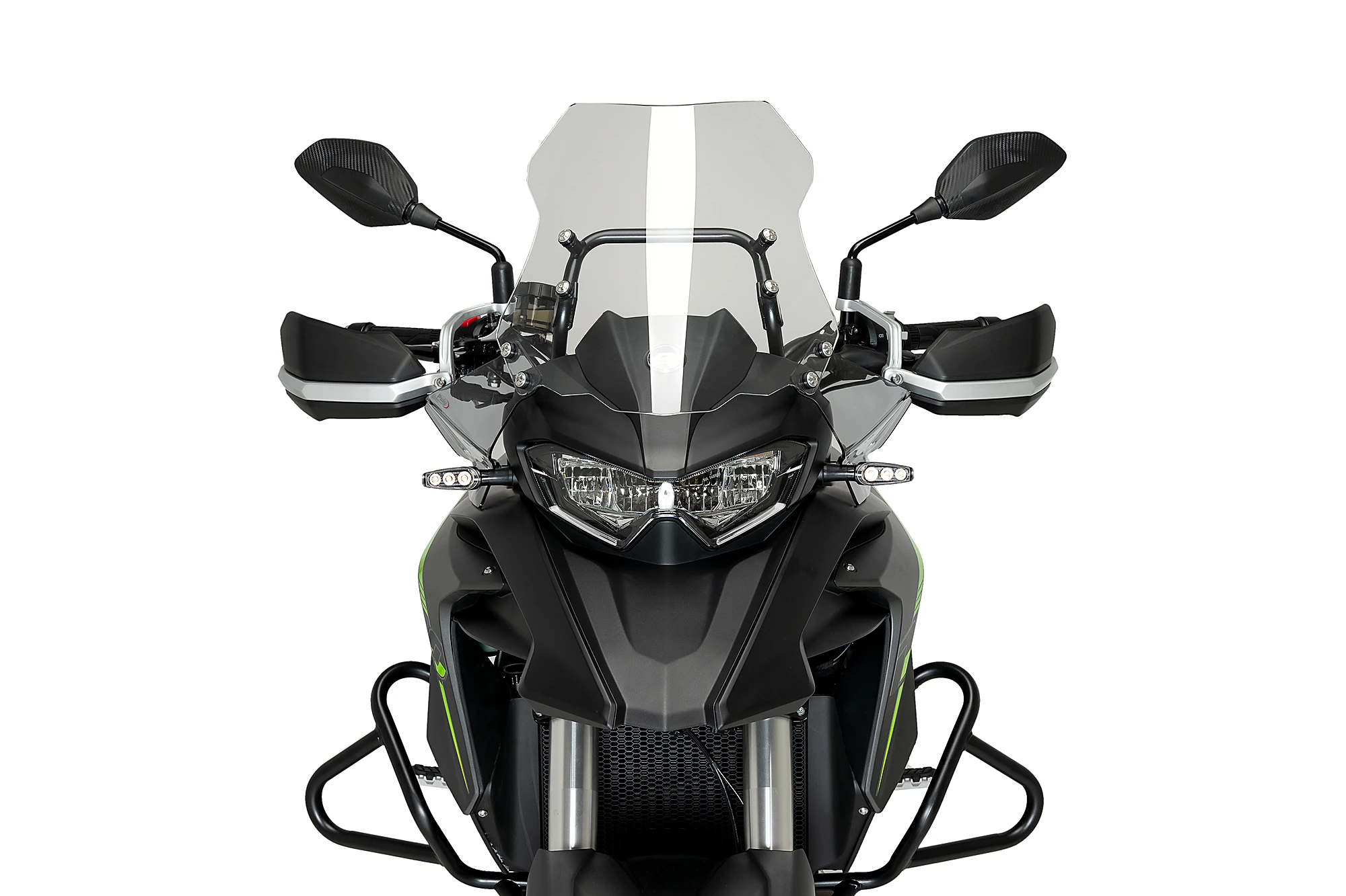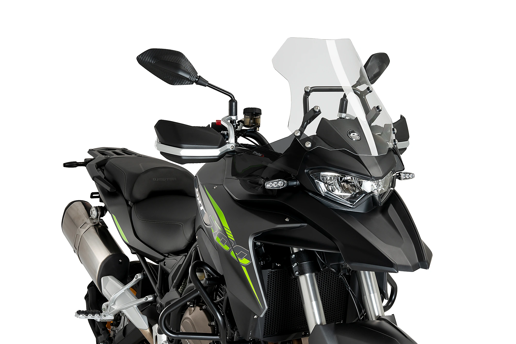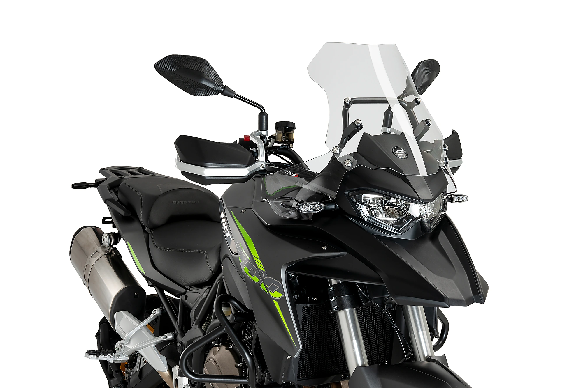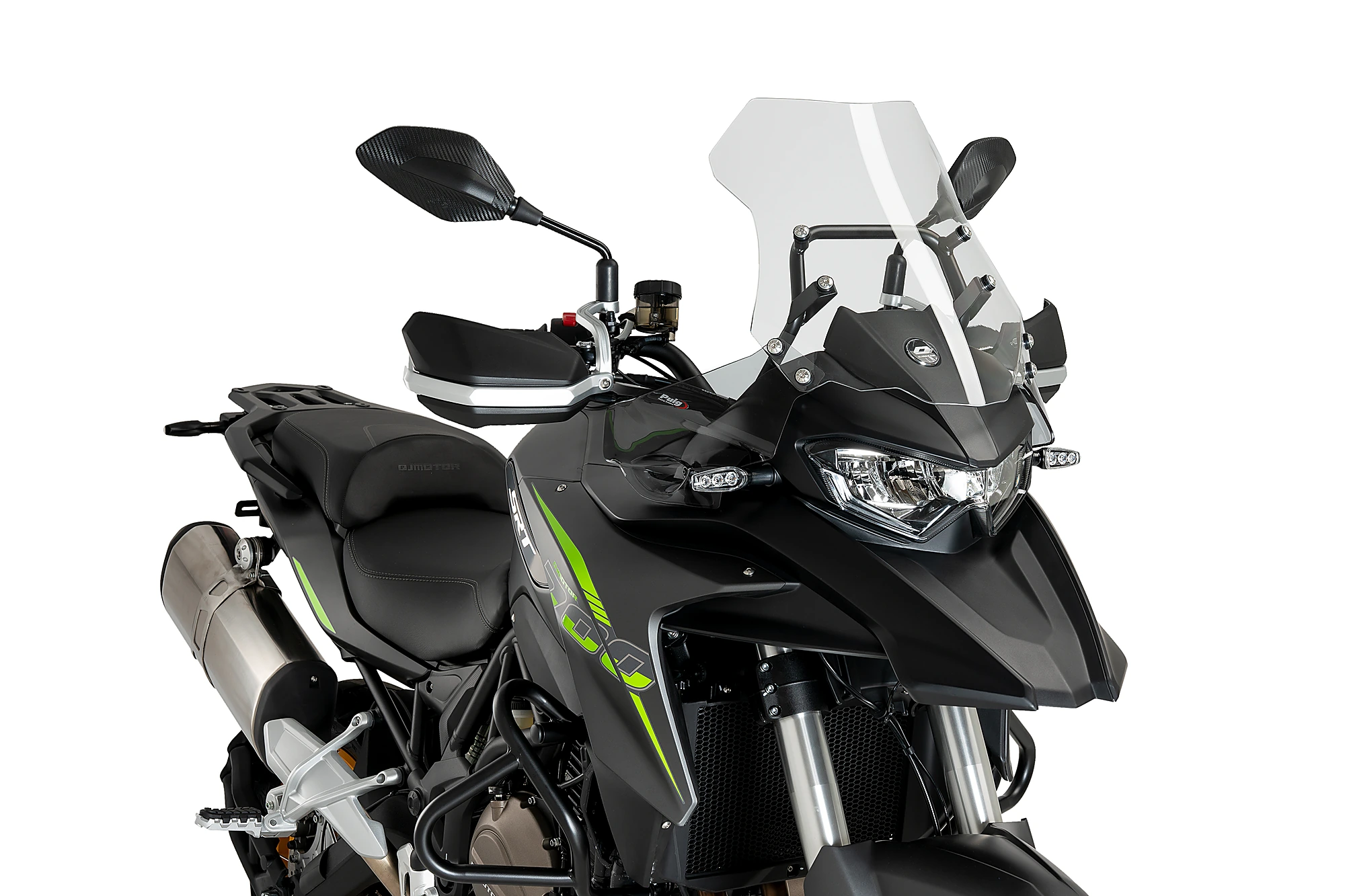 Les déflecteurs avant sont compatibles avec les protège-mains et extensions de protège-mains Puig d'origine, ainsi qu'avec toutes les bulles Puig pour le QJ Motor SRT 550 2023.