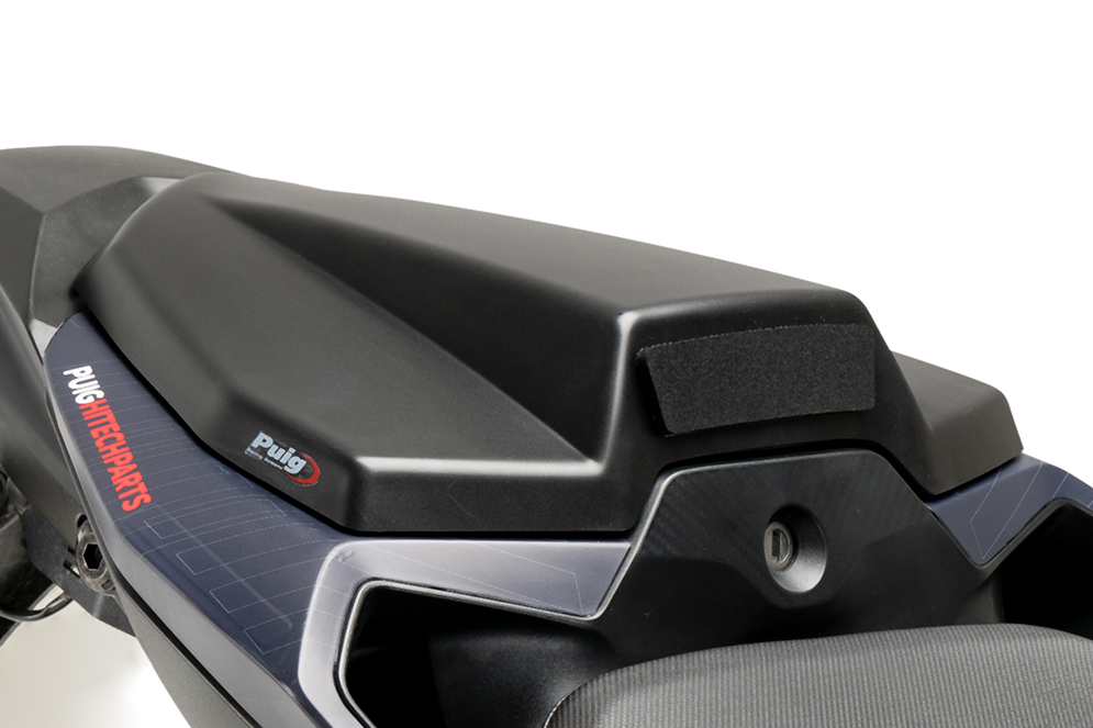 Élargissant la gamme de queues Puig, ce nouveau design minimaliste vise à affiner la partie arrière de la moto et à mettre en valeur ses lignes semblables à une guêpe. Avec une esthétique qui simplifie les formes et suit la ligne de conception caractéristique de la marque japonaise, cette queue vise à donner à la moto une apparence plus agressive, rappelant les motos de course monoplaces en se passant du siège passager. Ses canaux internes la rendent légère et aident en même temps à réduire les turbulences générées par l'air une fois qu'il frappe le pilote et le volume de la moto.