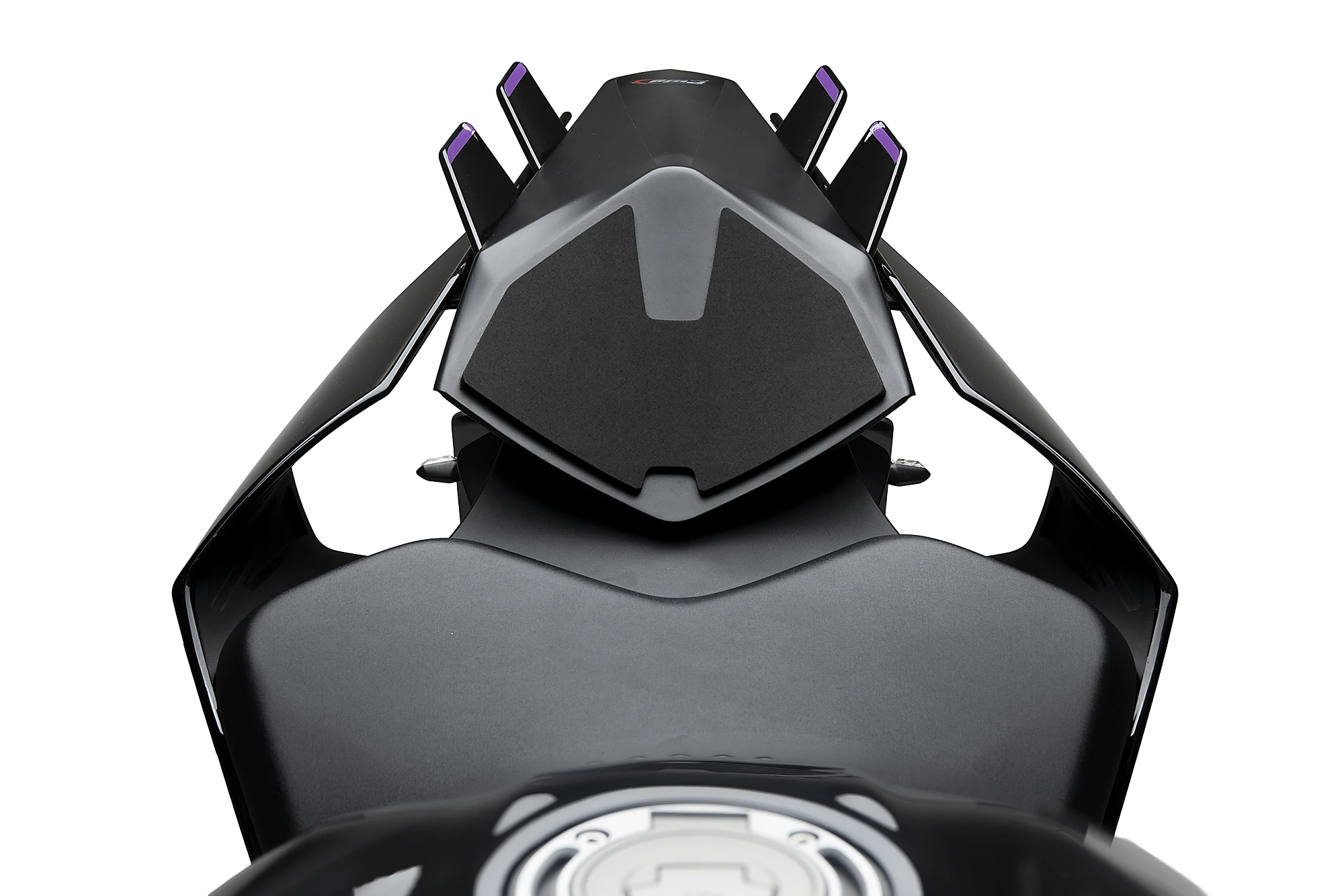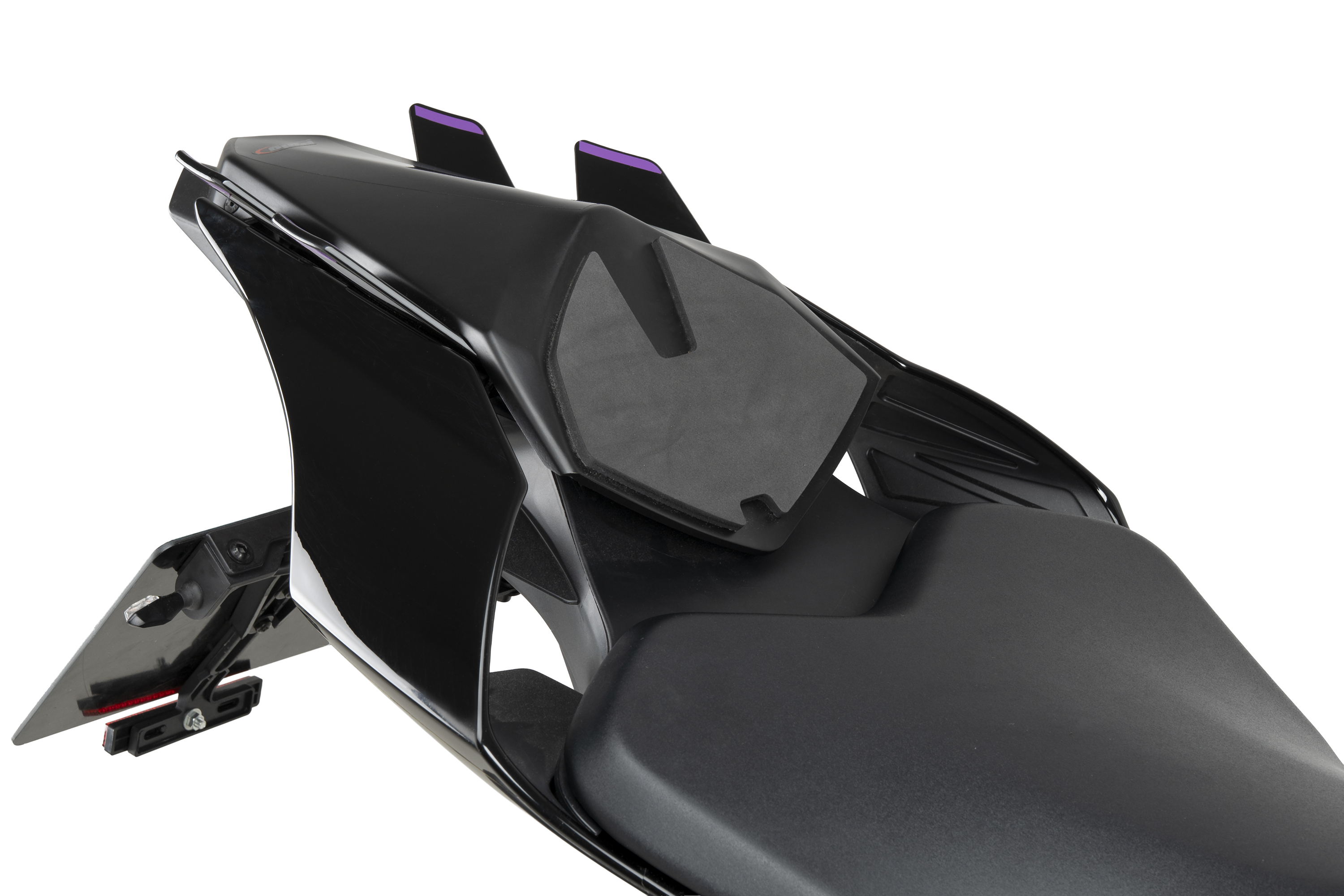 Son design soigneusement étudié vise à alléger l'arrière, simplifiant les lignes de la moto. De plus, dans la zone avant du carénage, nous incorporons une mousse en néoprène de 4 mm d'épaisseur de couleur noire, pour améliorer le confort du pilote lorsqu'il se met à l'abri à grande vitesse. Conçu et fabriqué près du Circuit de Catalogne à Montmeló, Barcelone, cette pièce est faite en plastique ABS noir mat, noir brillant ou en matériau ressemblant à du carbone, léger et résistant, de 3 mm d'épaisseur. Son montage est très simple car le capot du carénage Puig utilise le même système de fixation, ou un système similaire, pour que le montage du carénage soit aussi simple que possible.